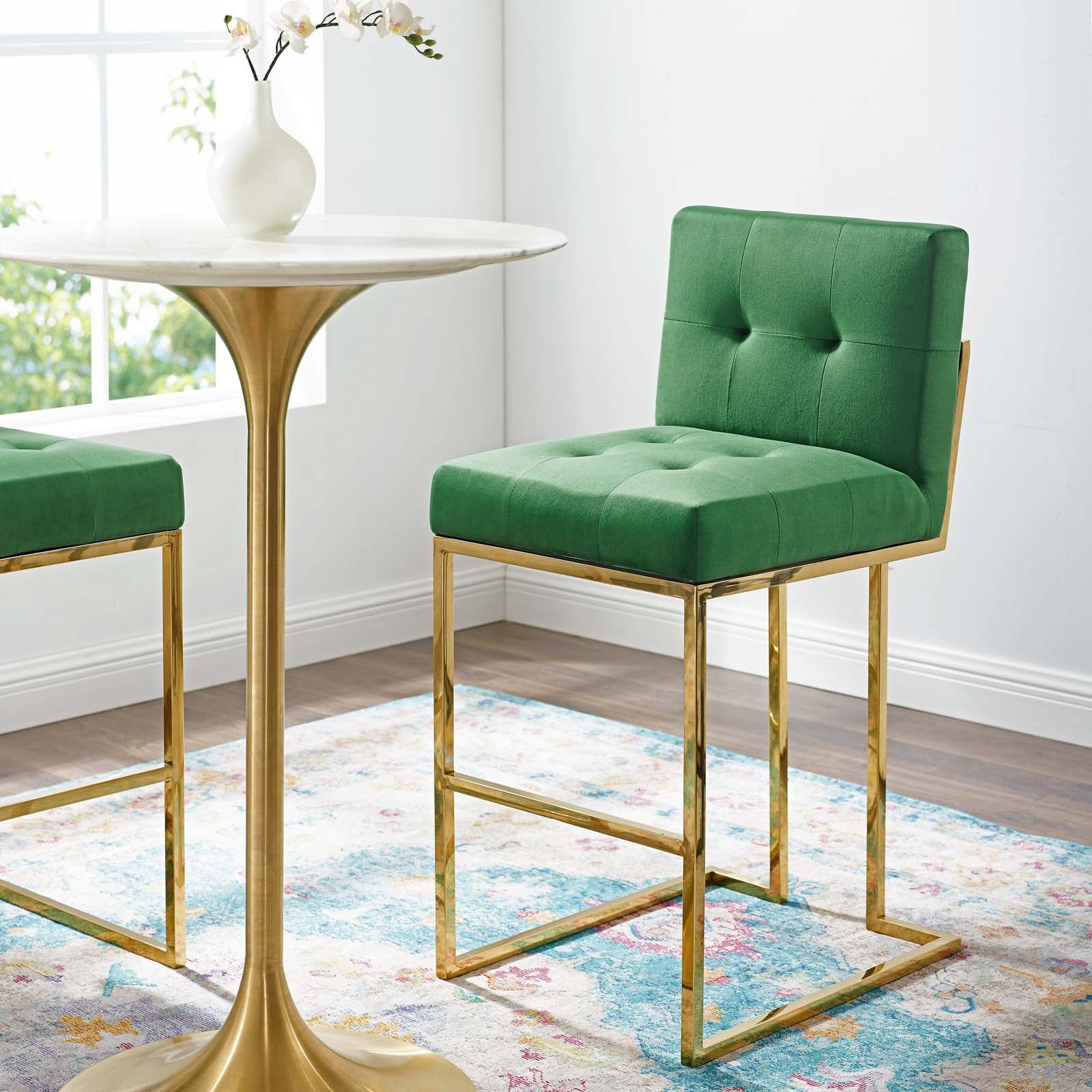 Modway Outlet Privy Gold Stainless Steel Performance Velvet Bar Stool by Modway Bar and Dining Furniture Gold Emerald - EEI-3856-GLD-EME