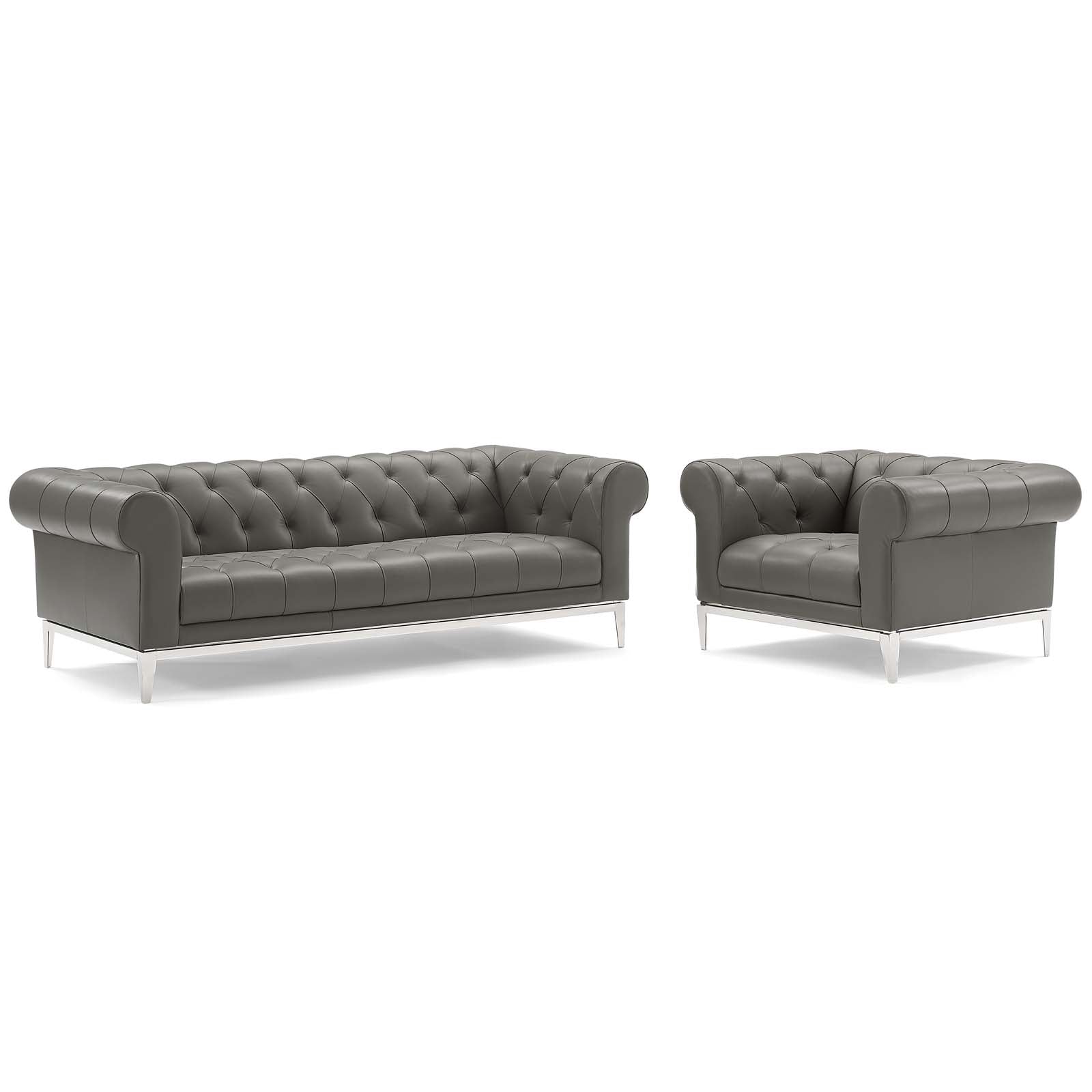 Modway Outlet Idyll Tufted Upholstered Leather Sofa and Armchair Set by Modway Living Room Furniture Gray - EEI-4191-GRY-SET
