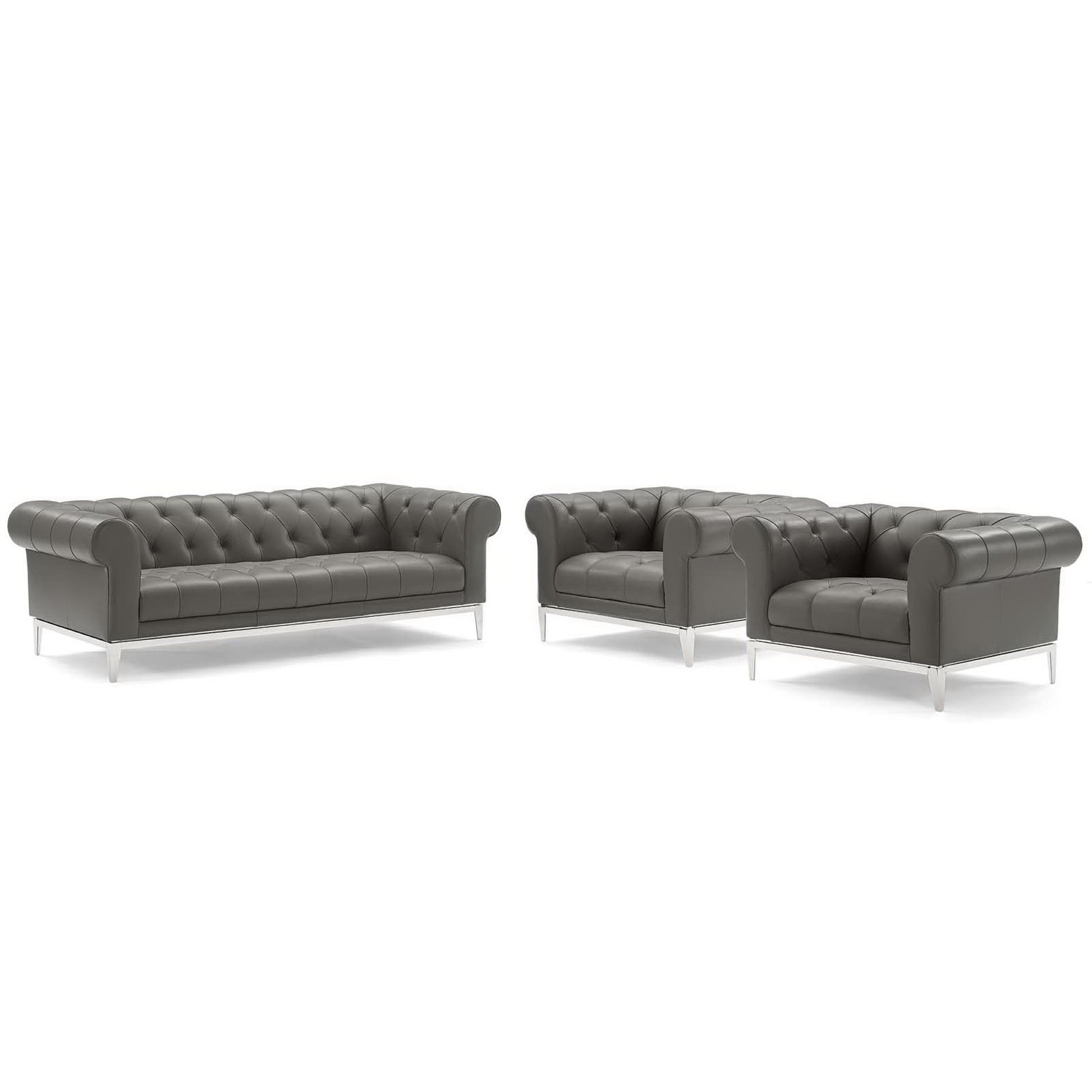 Modway Outlet Idyll 3 Piece Tufted Upholstered Leather Set by Modway Living Room Furniture Gray - EEI-4192-GRY-SET