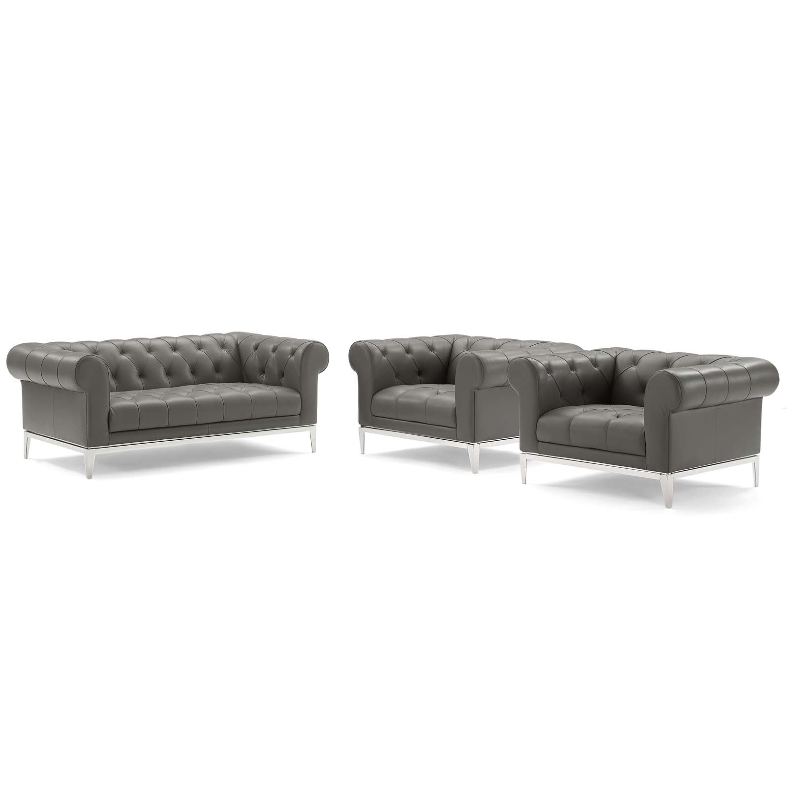 Modway Outlet Idyll 3 Piece Tufted Upholstered Leather Set by Modway Living Room Furniture Gray - EEI-4194-GRY-SET