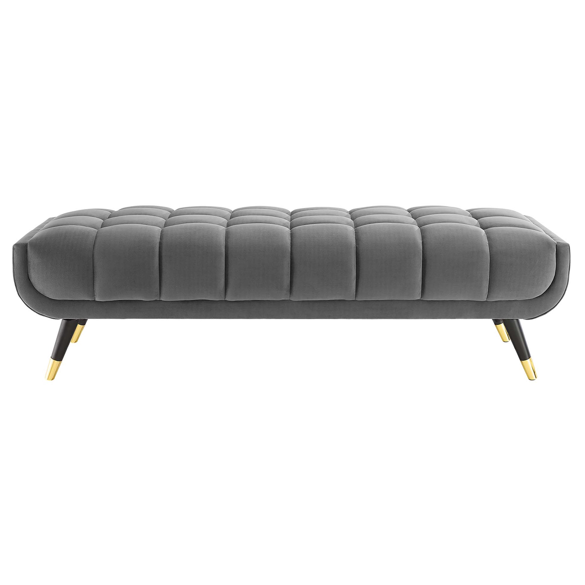 Use:Embolden your living room d?cor with Adept Performance Velvet Accent Bench. Featuring a blend of chic, contemporary, and mid-century modern design, Adept's broad profile, generous tufting, stain-resistant performance velvet polyester upholstery, and subtle metal accents imbue rich detail and chic sophistication. Kick back and enjoy the plush comfort of the Adept bench while reading your favorite book or lounging with friends and family. Resting atop a splayed black birchwood frame with gold metal end caps, Adept is a striking addition to the home or apartment.,60" Mid-Century Modern Bench
