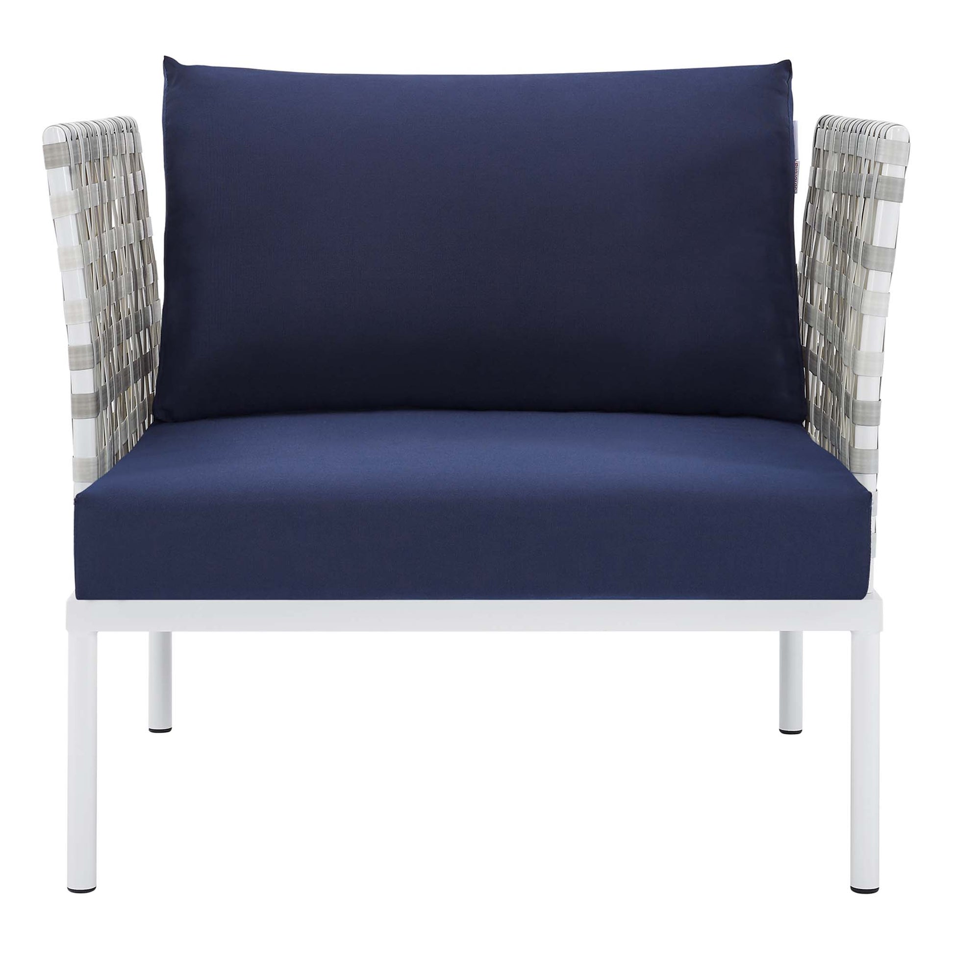 Modway Outlet Harmony Sunbrella? Basket Weave Outdoor Patio Aluminum Armchair by Modway Outdoor Furniture Furniture Taupe Navy - EEI-4541-TAU-NAV