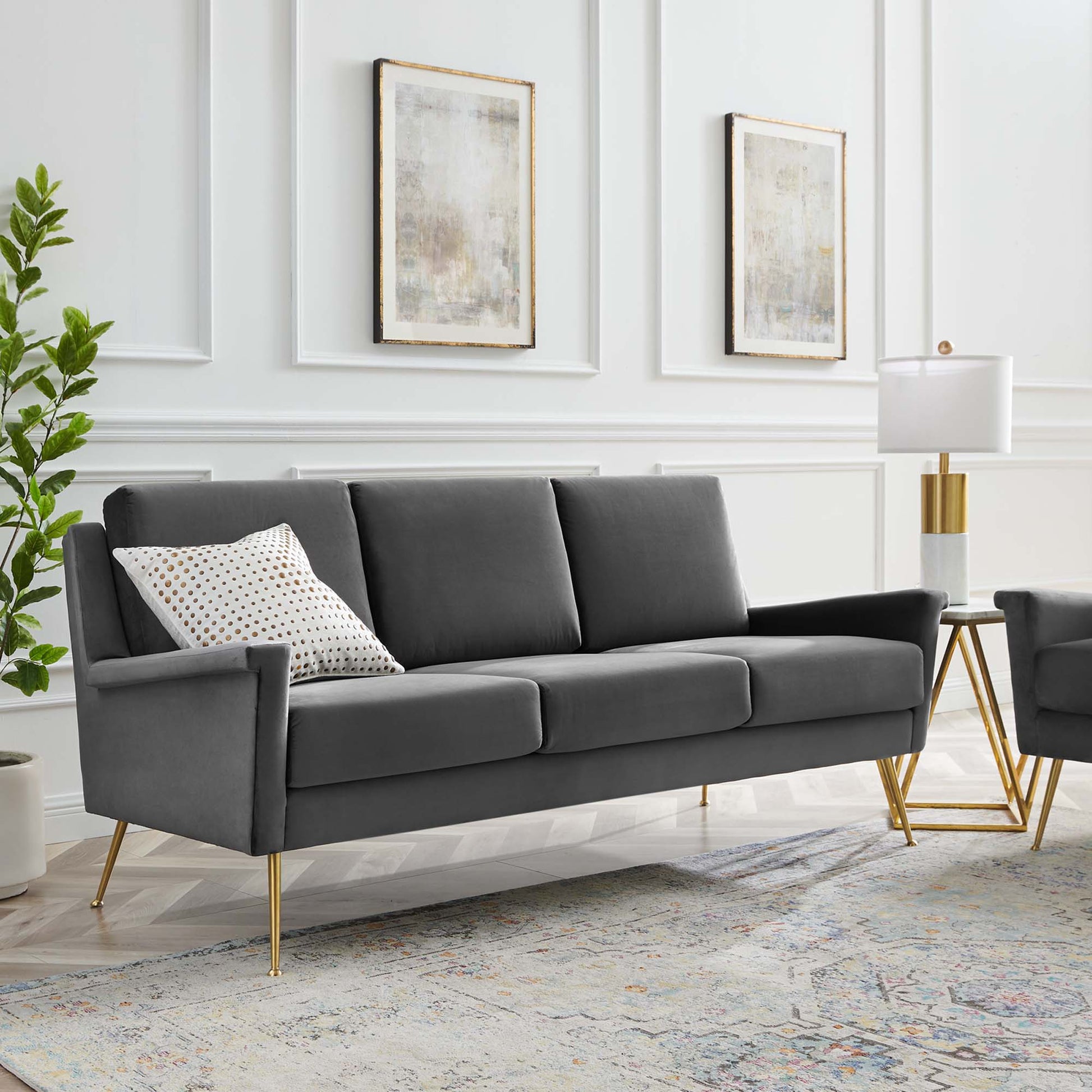 Modway Outlet Chesapeake Performance Velvet Sofa by Modway Living Room Furniture Gold Gray - EEI-4627-GLD-GRY