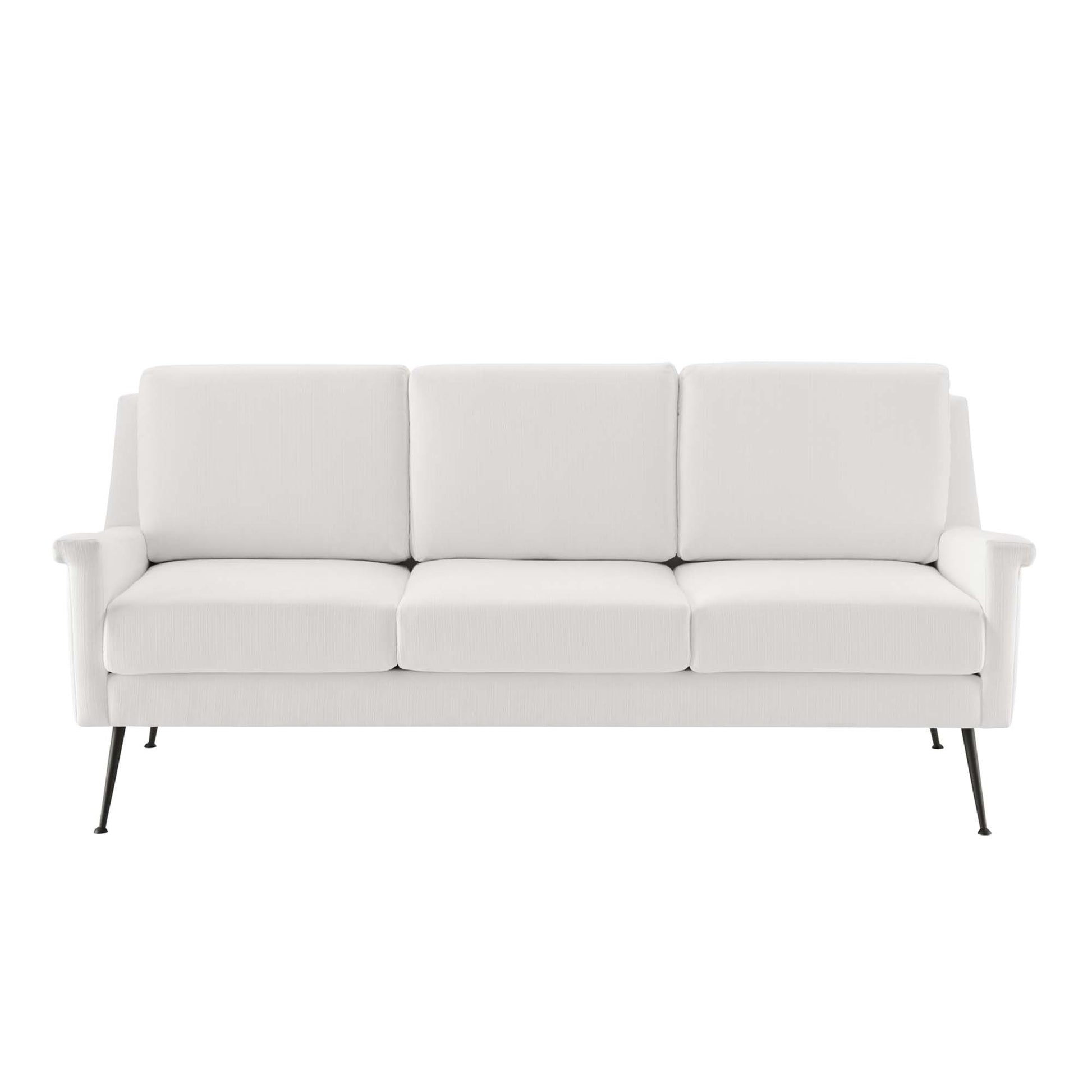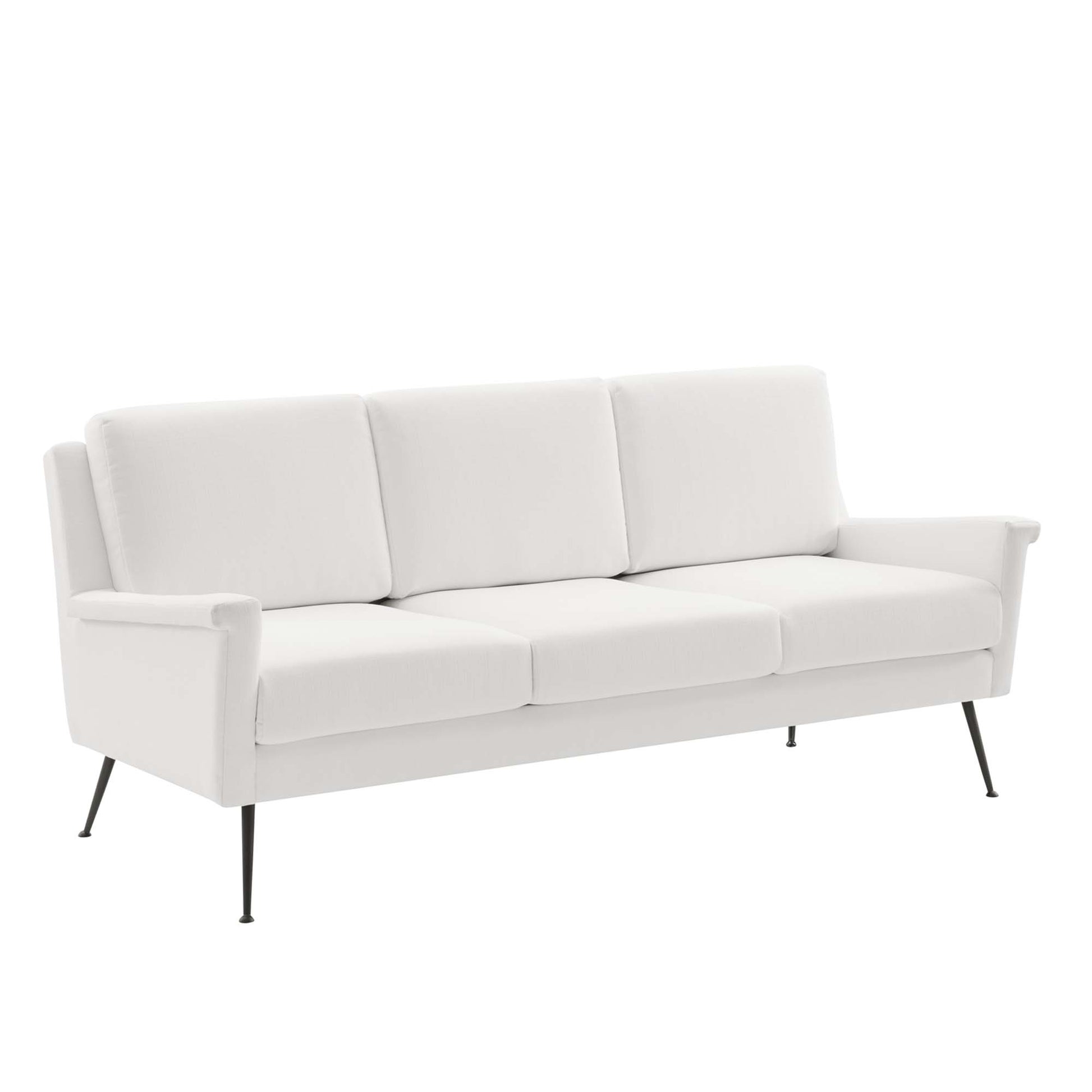Use:Redefine your living space with the modern design and retro style of the Chesapeake Fabric Sofa. Featuring a tailored profile and subtle flared silhouette, this fabric sofa refreshes a living room, den, office, or bedroom sitting area. Offering a luxurious seating experience, this sofa is upholstered in durable polyester fabric and padded with dense foam for ultimate comfort. Resting atop matte black metal legs, this living room sofa is crafted with solid wood and plywood and supports up to 600 lbs.,Modern Sofa