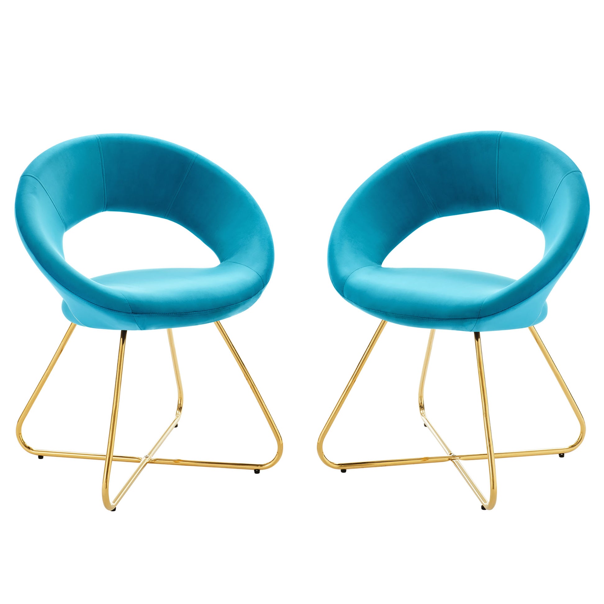 Modway Outlet Nouvelle Performance Velvet Dining Chair Set of 2 by Modway Bar and Dining Furniture Gold Blue - EEI-4681-GLD-BLU