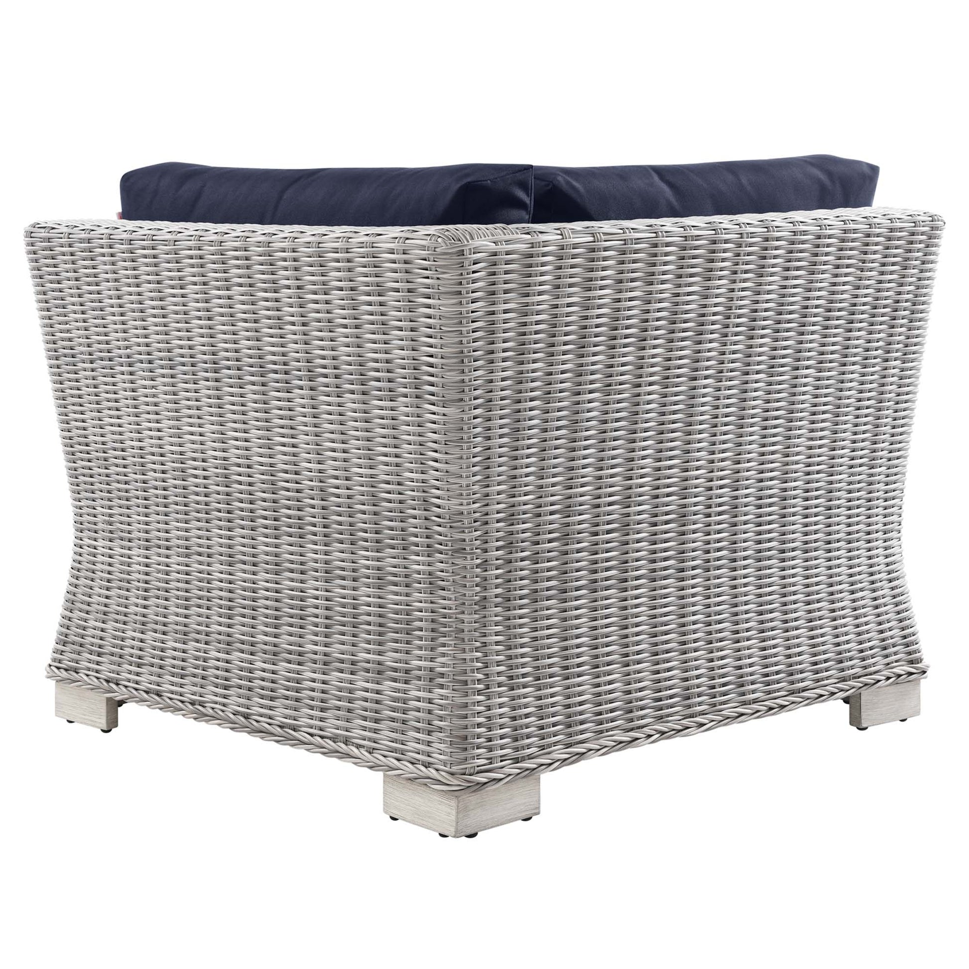 Modway Outlet Conway Outdoor Patio Wicker Rattan Corner Chair by Modway Outdoor Furniture Furniture Light Gray Navy - EEI-4838-LGR-NAV