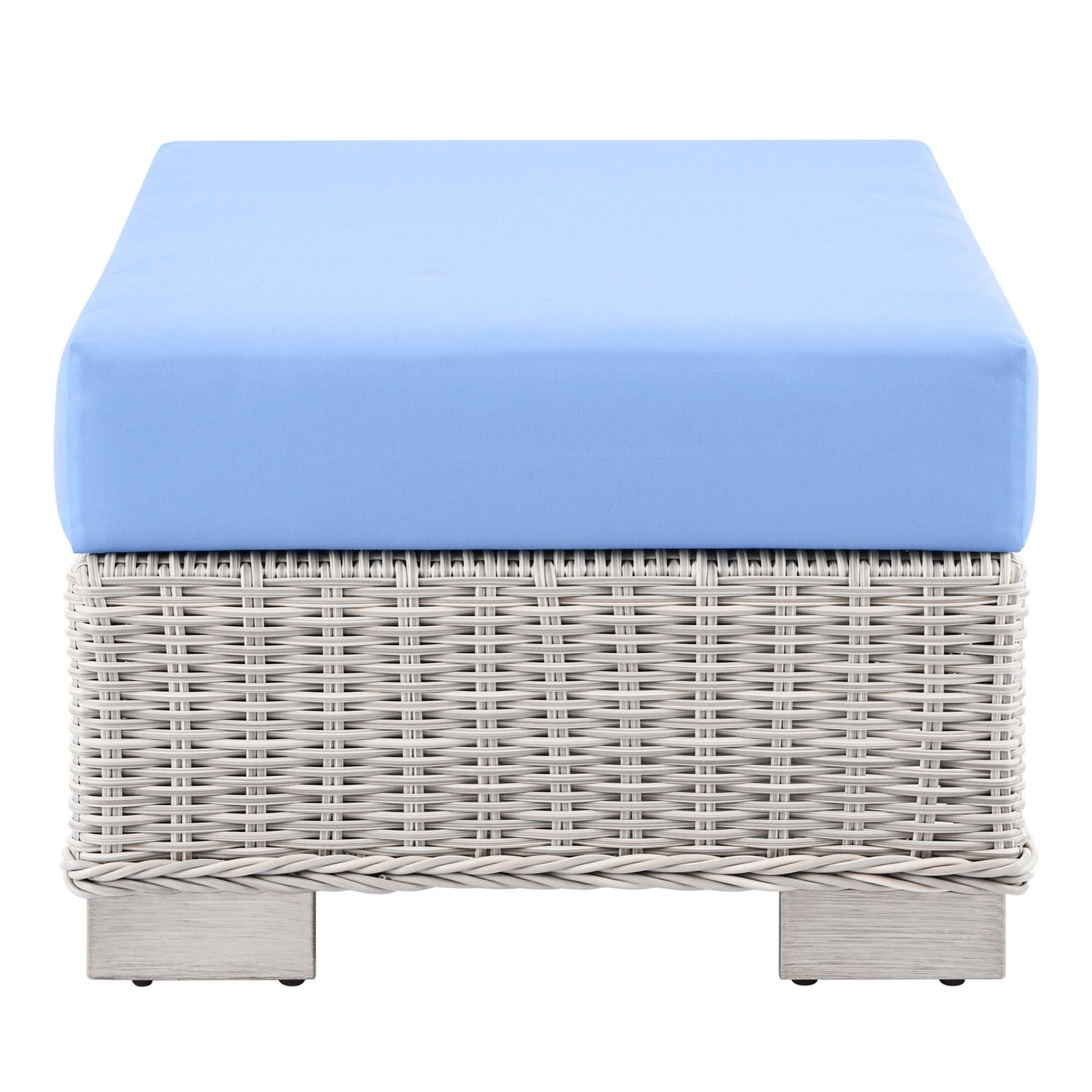Modway Outlet Conway Outdoor Patio Wicker Rattan Ottoman by Modway Outdoor Furniture Furniture Light Gray Light Blue - EEI-4839-LGR-LBU