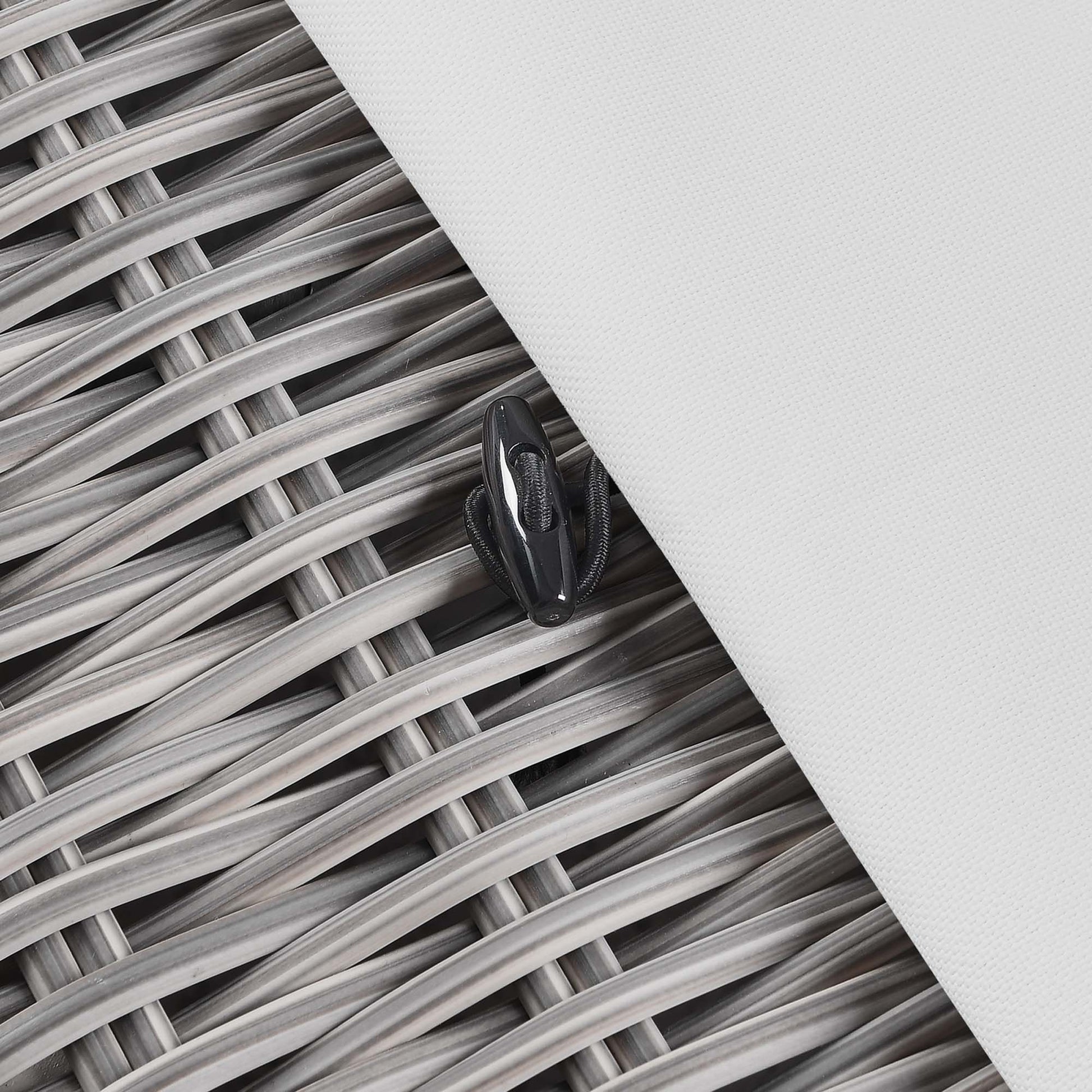 Use:Enjoy fresh air and alfresco relaxation with the Conway Outdoor Patio Wicker Rattan Ottoman. Wrapped in UV-resistant light gray synthetic wicker rattan, this patio ottoman boasts organic texture and a neutral hue that brings a calming presence to your outdoor space. The frame of this outdoor ottoman is crafted with durable powder-coated aluminum and rests on L-shaped legs with plastic foot glides. A thick foam padded cushion covered with a removable, water-resistant polyester cover offers a comfortable seat and affixes securely to the ottoman with a cord tension attachment. Trending aesthetics and a classic design define this outdoor patio furniture collection making it a beautiful addition to any outdoor space including the backyard, patio, porch, balcony, or poolside. Assembly required. Patio Ottoman Weight Capacity: 300 lbs.
