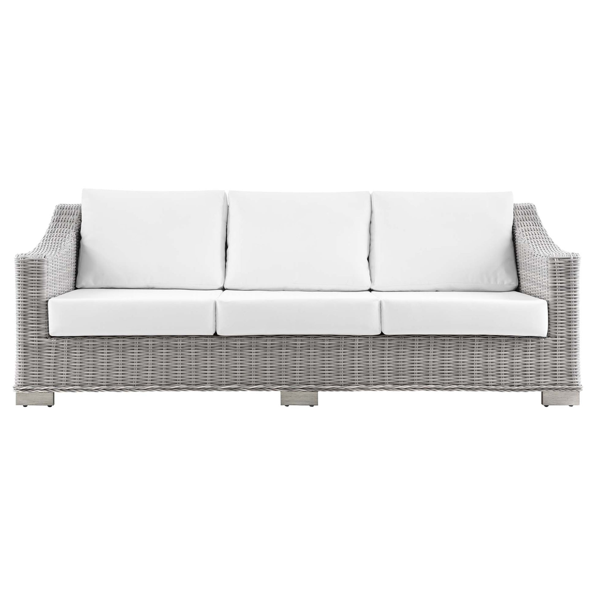 Modway Outlet Conway Outdoor Patio Wicker Rattan Sofa by Modway Outdoor Furniture Furniture Light Gray White - EEI-4842-LGR-WHI