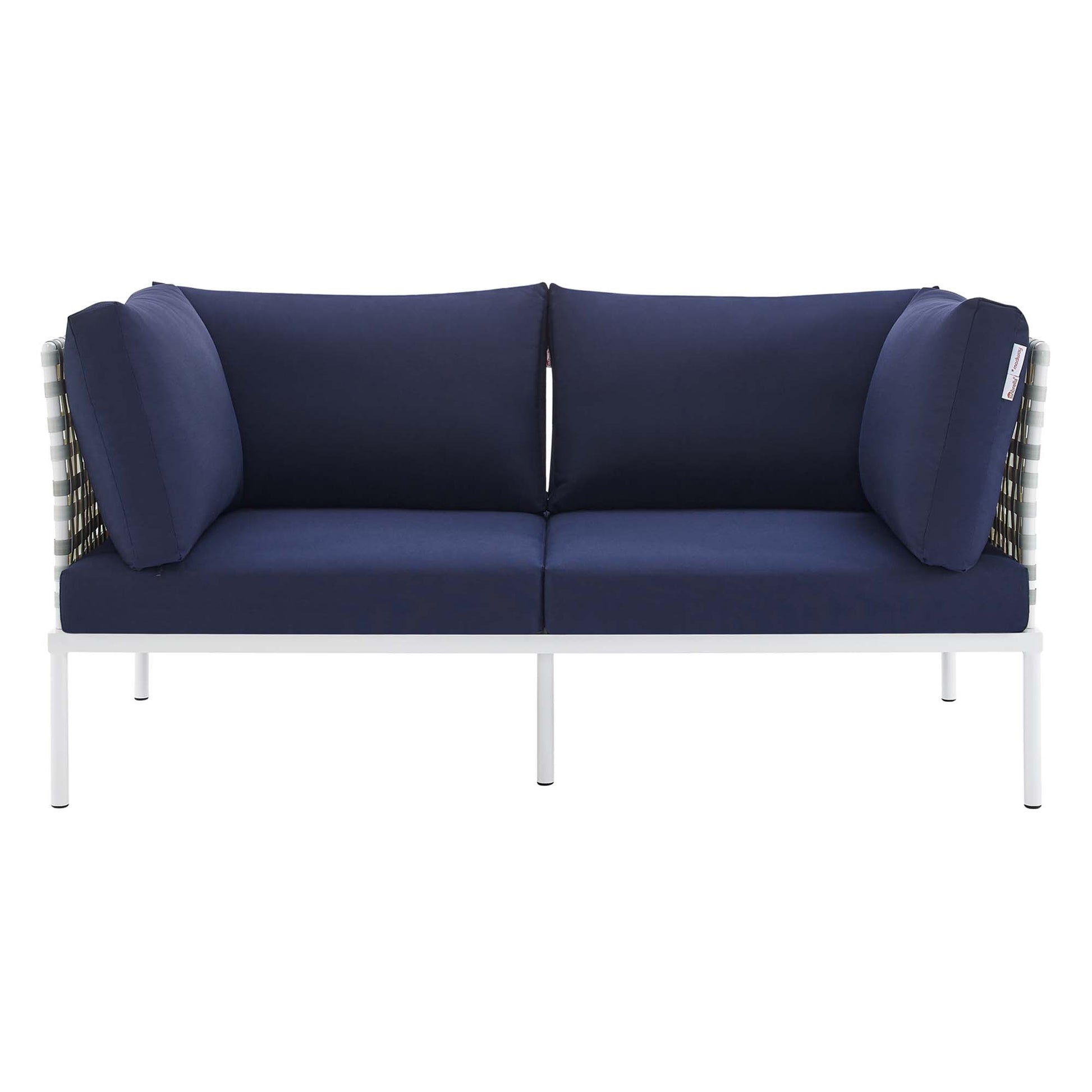Modway Outlet Harmony Sunbrella? Basket Weave Outdoor Patio Aluminum Loveseat by Modway Outdoor Furniture Furniture Taupe Navy - EEI-4961-TAU-NAV