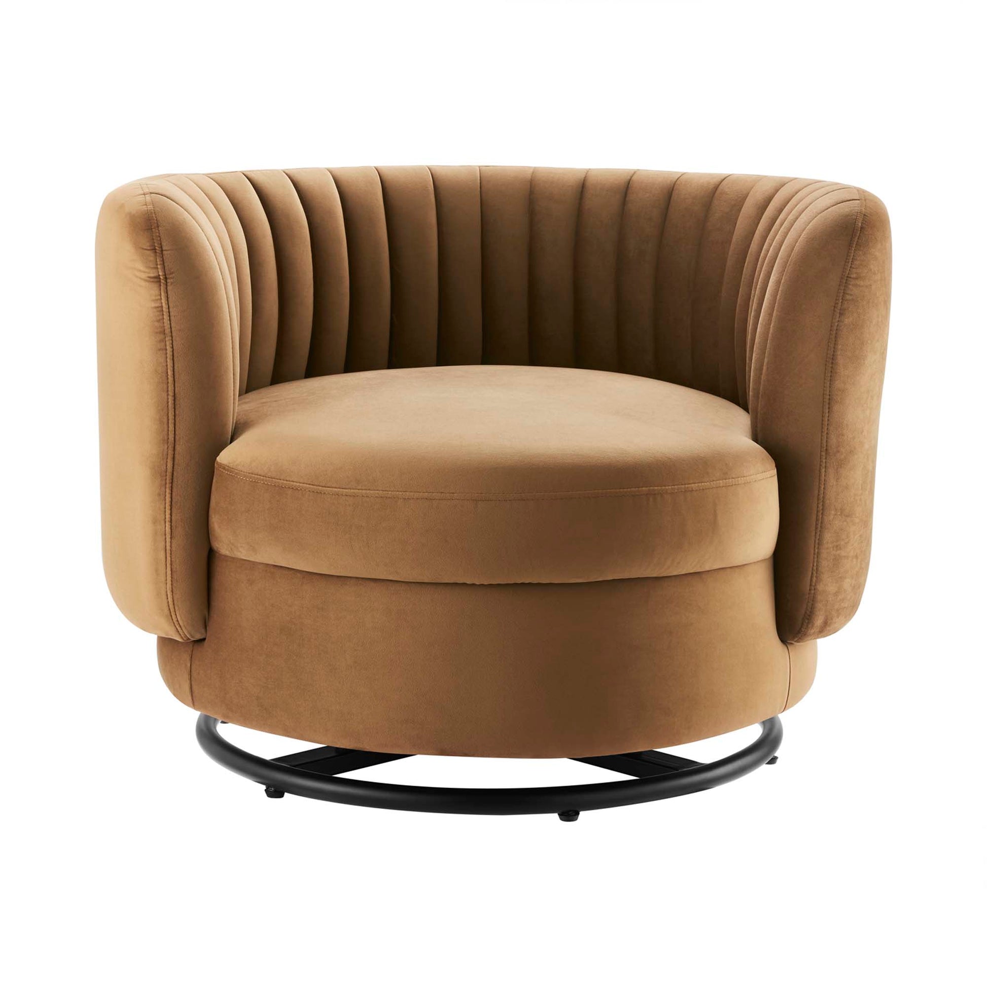 Modway Outlet Embrace Tufted Performance Velvet Swivel Chair by Modway Living Room Furniture Black Cognac - EEI-4998-BLK-COG