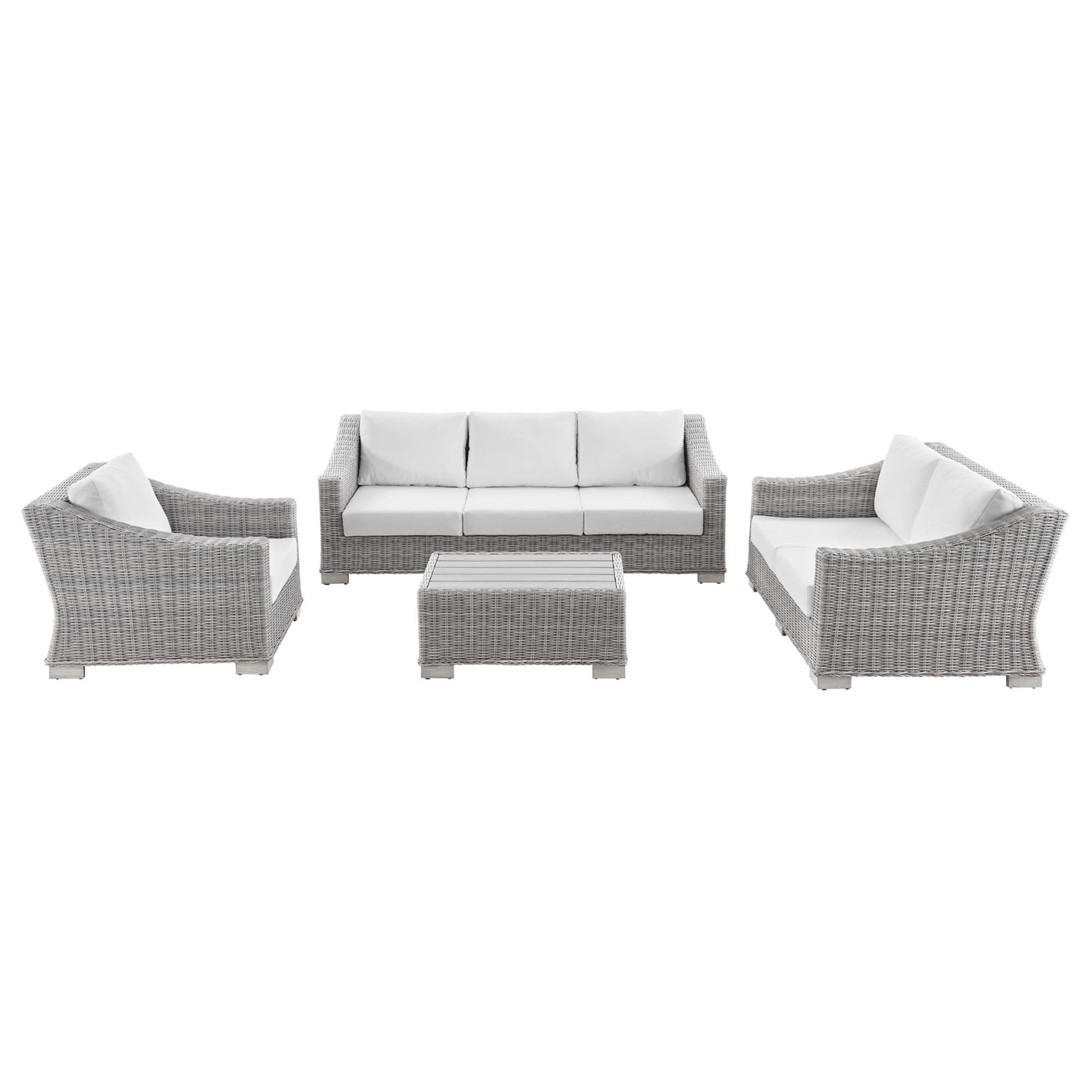 Modway Outlet Conway 4-Piece Outdoor Patio Wicker Rattan Furniture Set by Modway Outdoor Furniture Furniture Light Gray White - EEI-5091-WHI