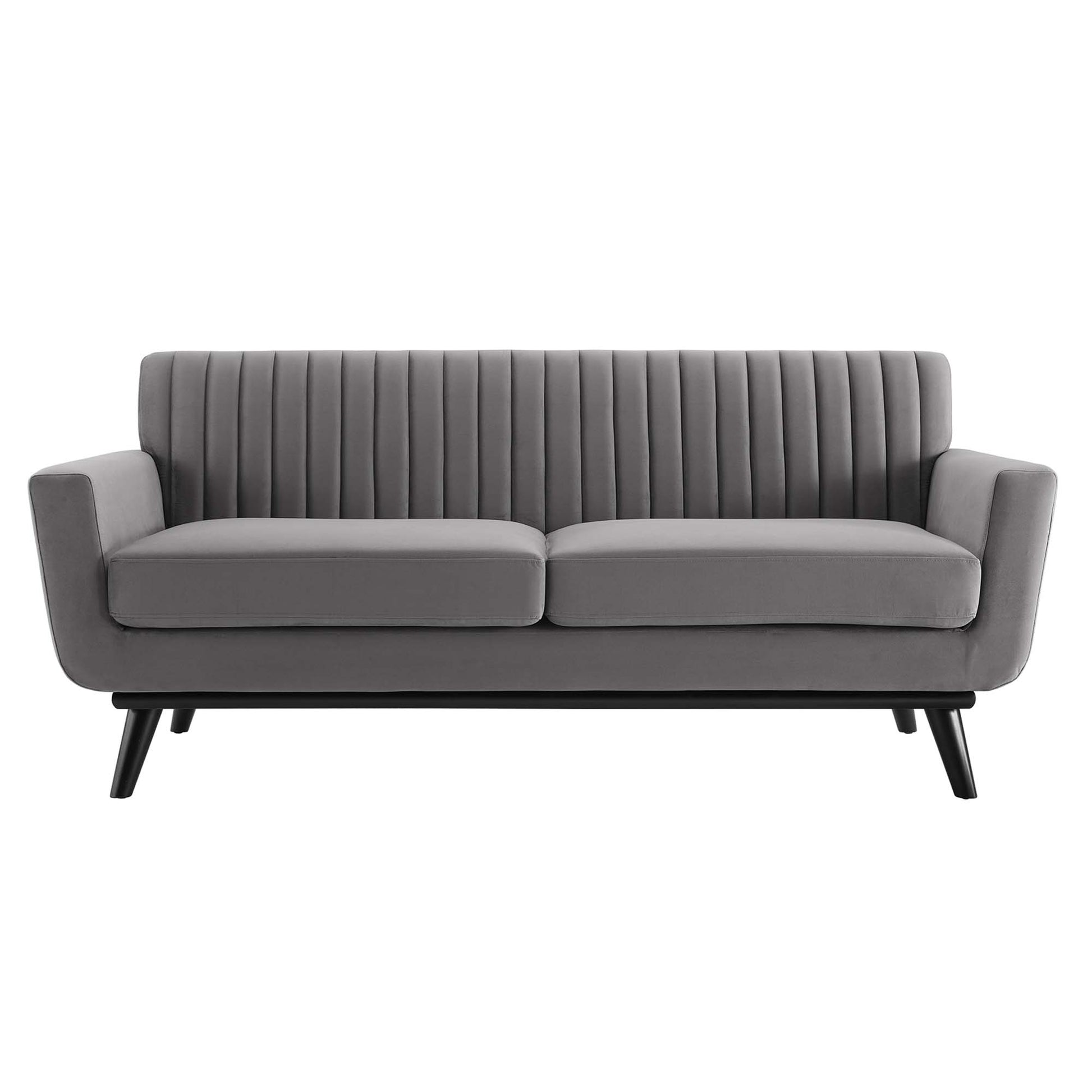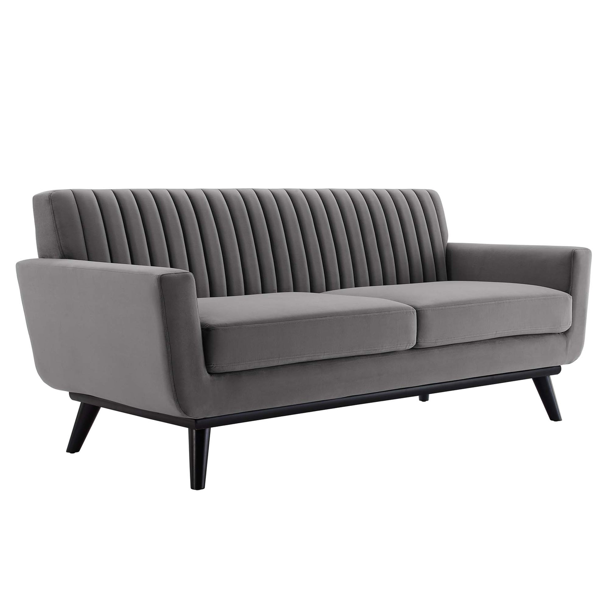 Use:Gently sloping curves and plush seat cushion create a favorite lounging spot. Whether relaxing after a long day at work, settling in with coffee and brunch, or entering a spirited discussion with friends, the Engage Loveseat is a welcome presence in your home. Channel tufting creates eye-catching appeal, adding depth that brings your sitting d??cor to center stage. The black painted rubberwood legs and frame offer a solid base for the stain-resistant performance velvet upholstery.,Channel Tufted Loveseat
