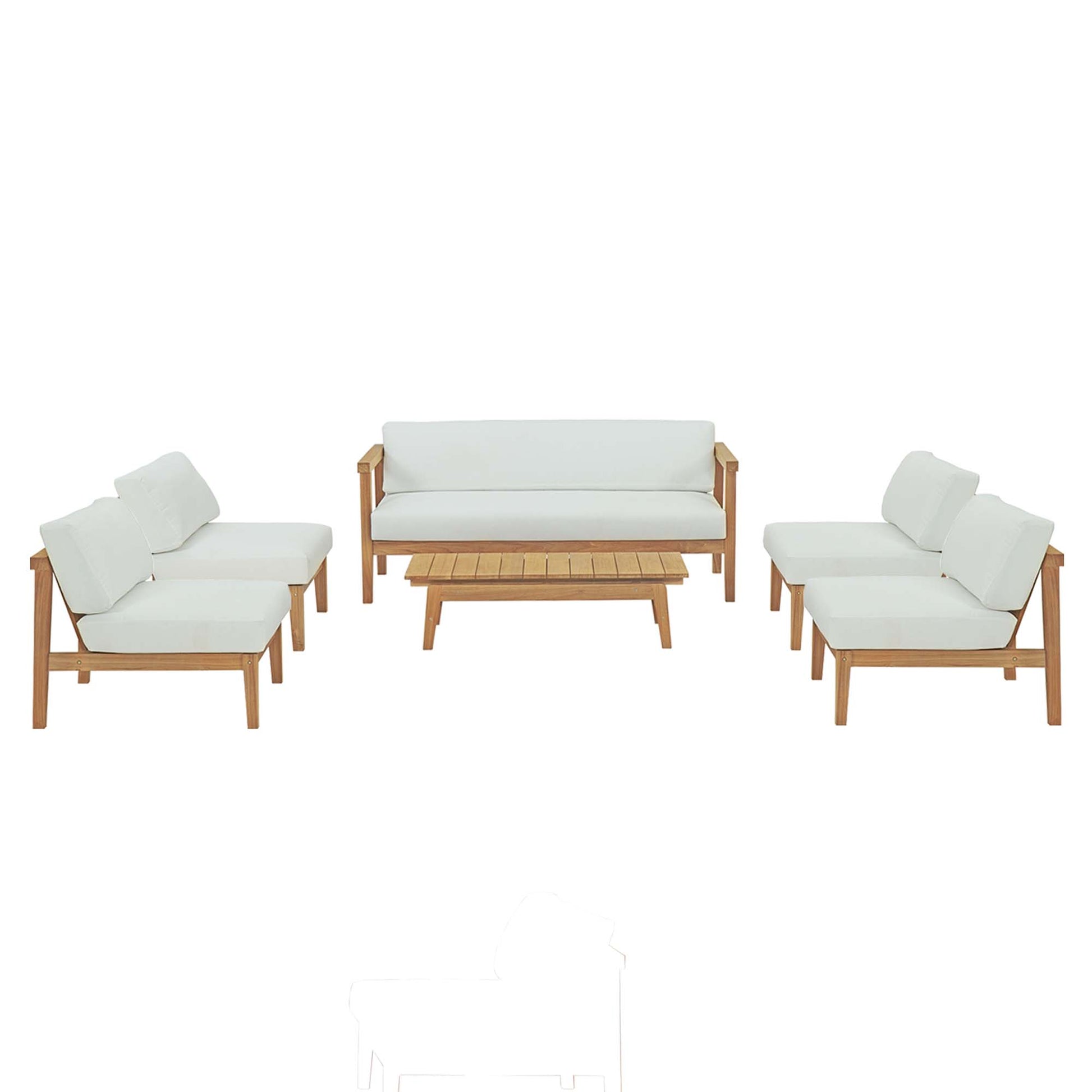 Modway - Bayport 6 Piece Outdoor Patio Teak Set by Modway Outdoor Furniture Sofa Sectionals White - EEI-5483-NAT-WHI-SET