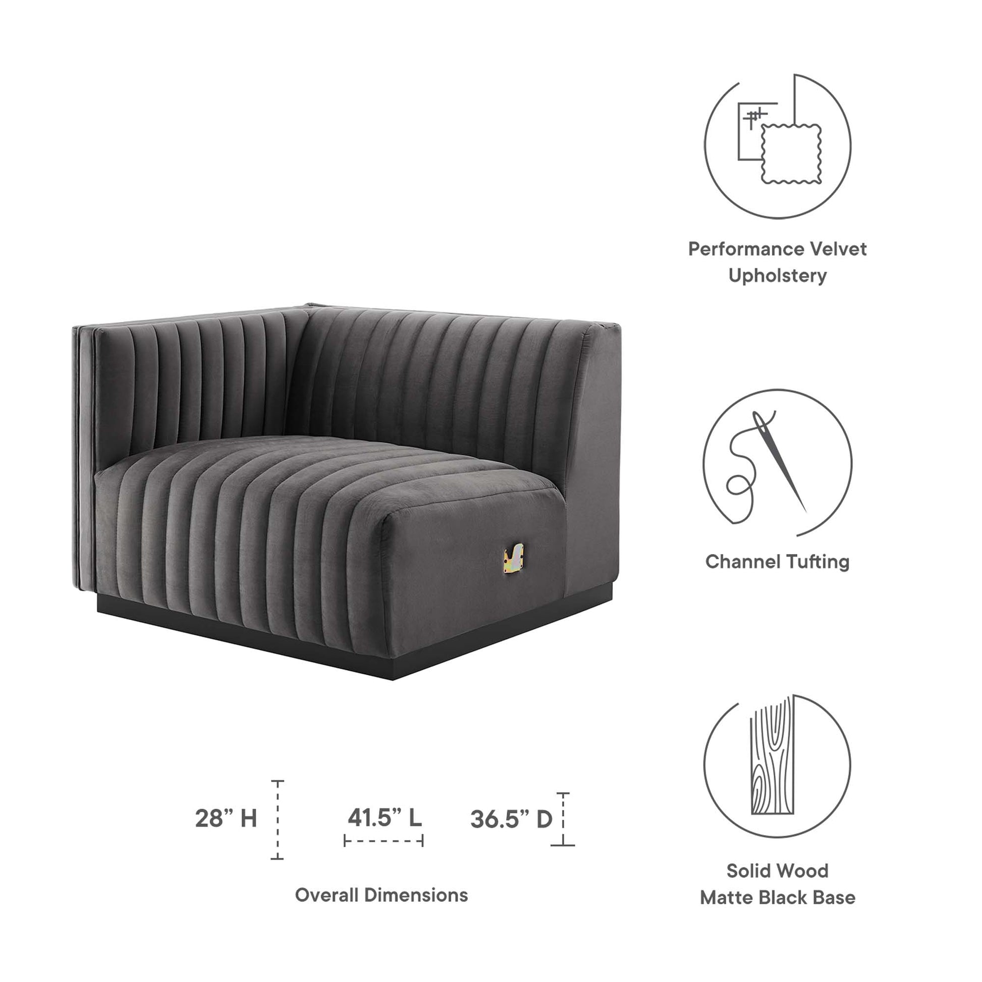Modway Outlet Conjure Channel Tufted Performance Velvet Left-Arm Chair by Modway Living Room Furniture Black Gray - EEI-5490-BLK-GRY