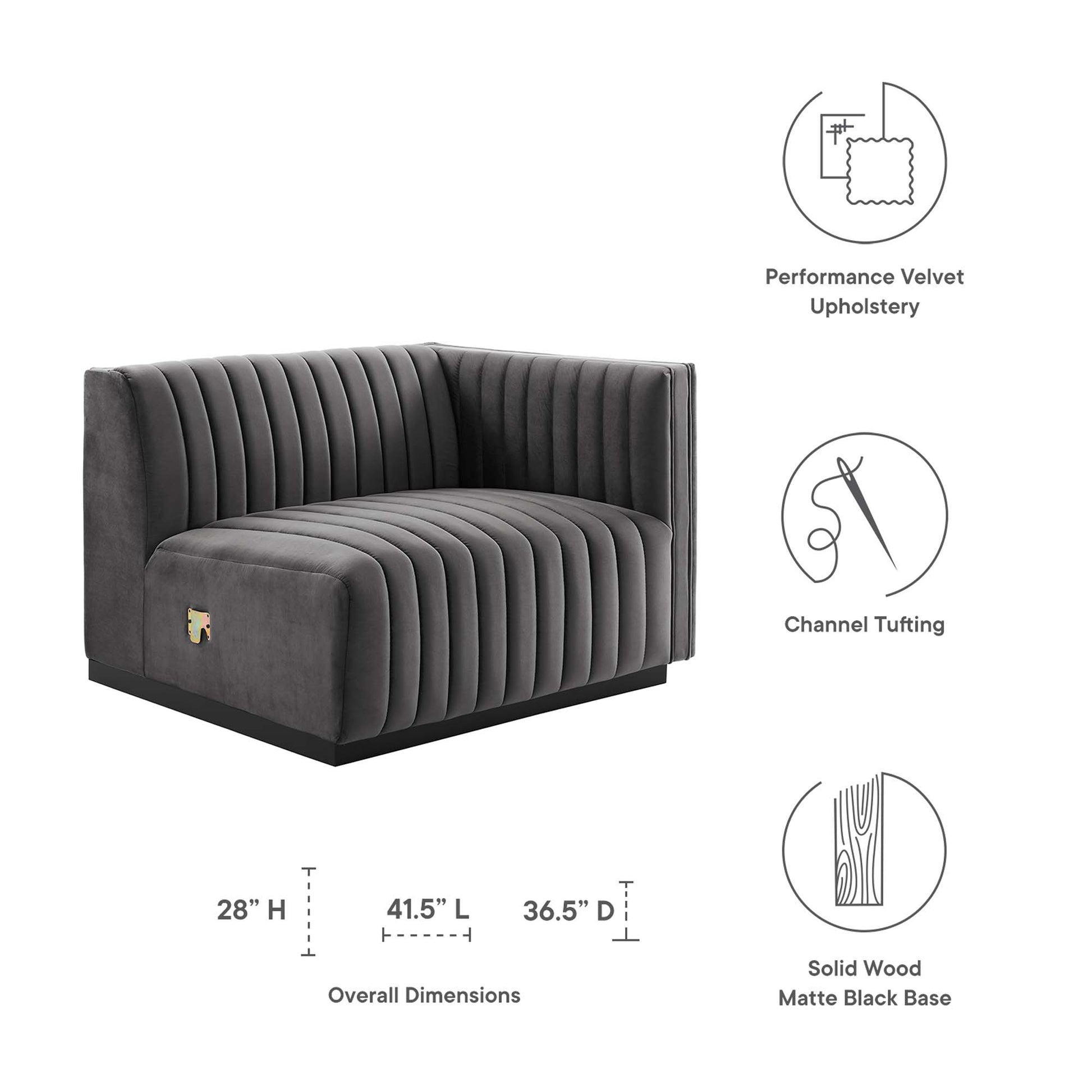 Modway Outlet Conjure Channel Tufted Performance Velvet Right-Arm Chair by Modway Living Room Furniture Black Gray - EEI-5492-BLK-GRY