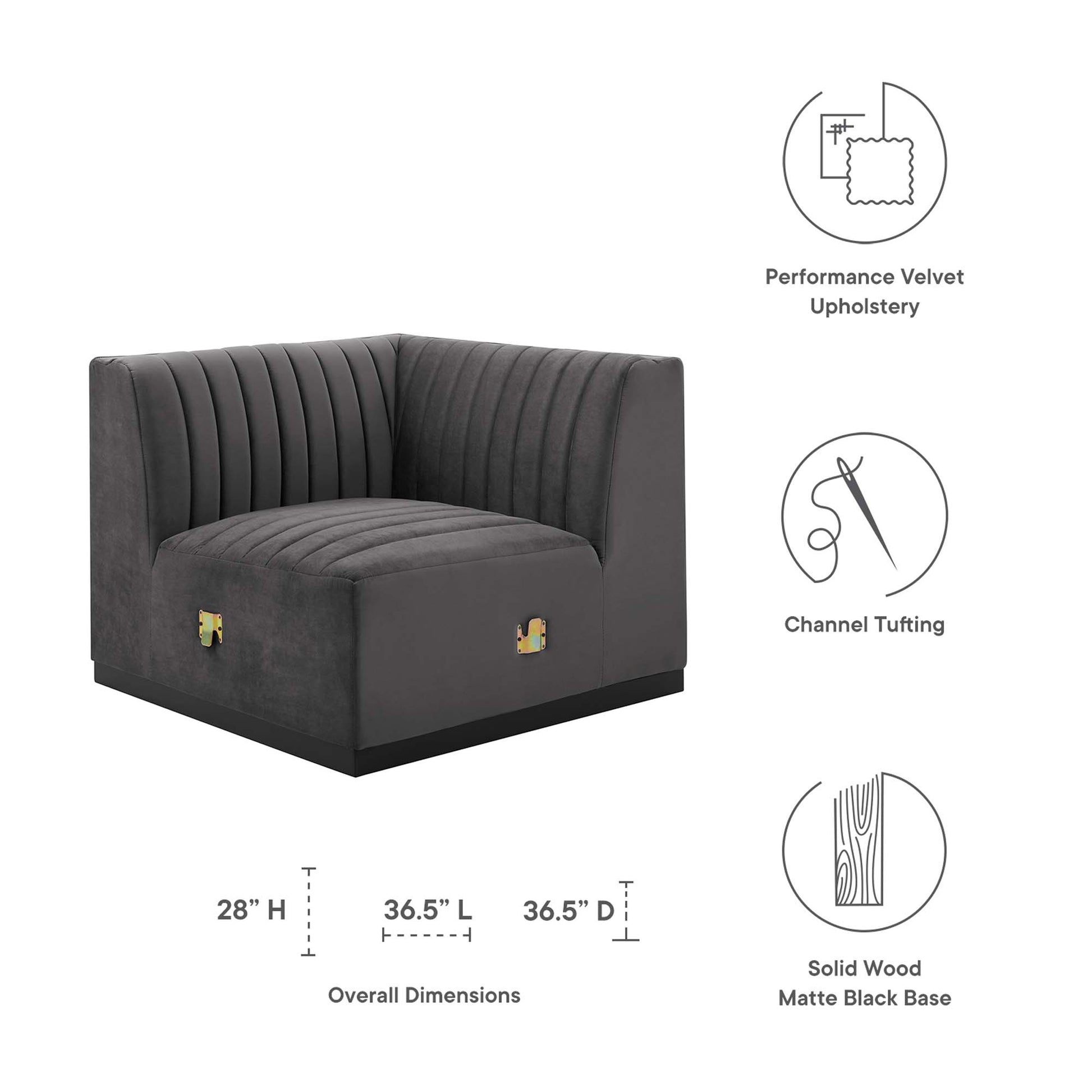 Modway Outlet Conjure Channel Tufted Performance Velvet Left Corner Chair by Modway Living Room Furniture Black Gray - EEI-5496-BLK-GRY