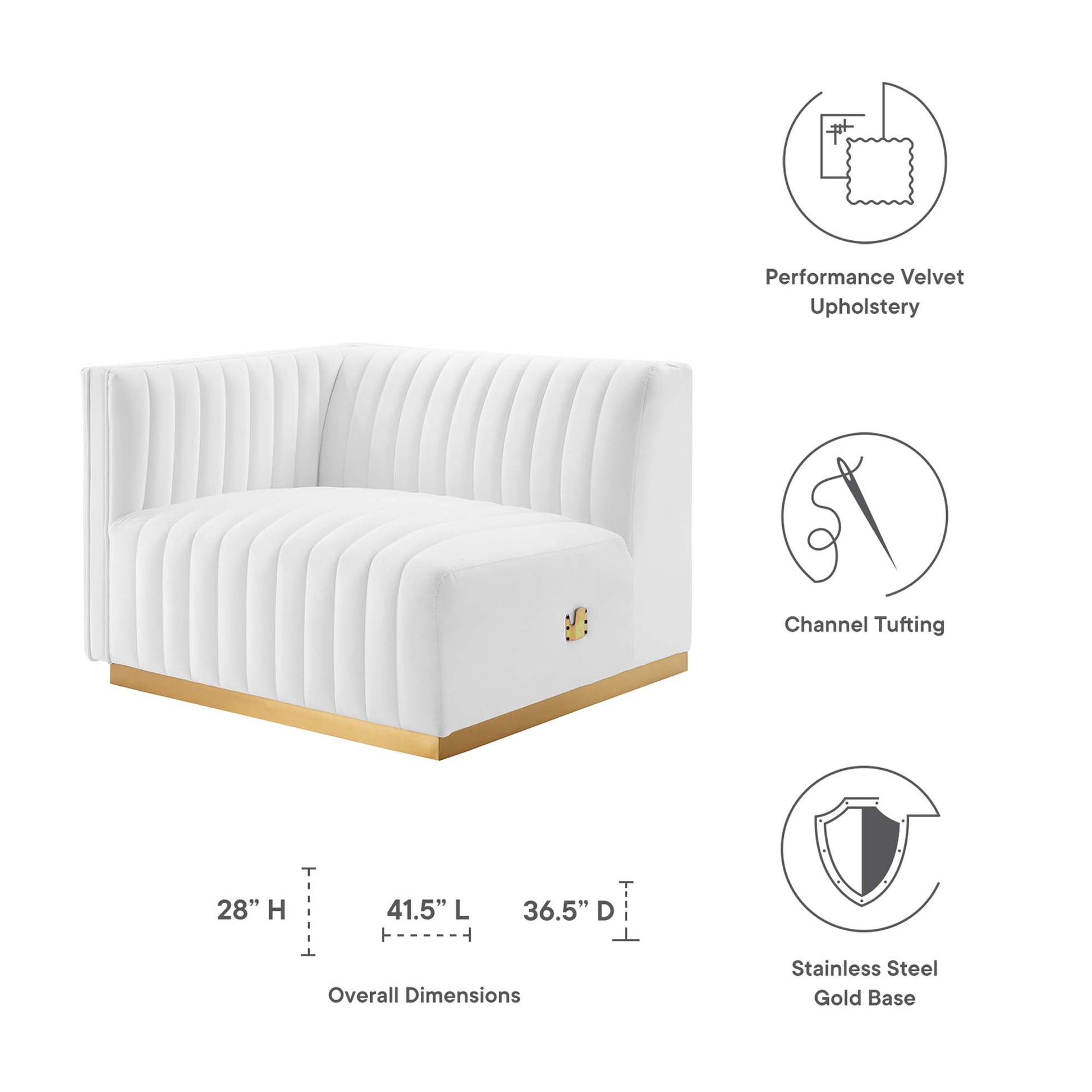 Modway Outlet Conjure Channel Tufted Performance Velvet Left-Arm Chair by Modway Living Room Furniture Gold - EEI-5502-GLD-WHI