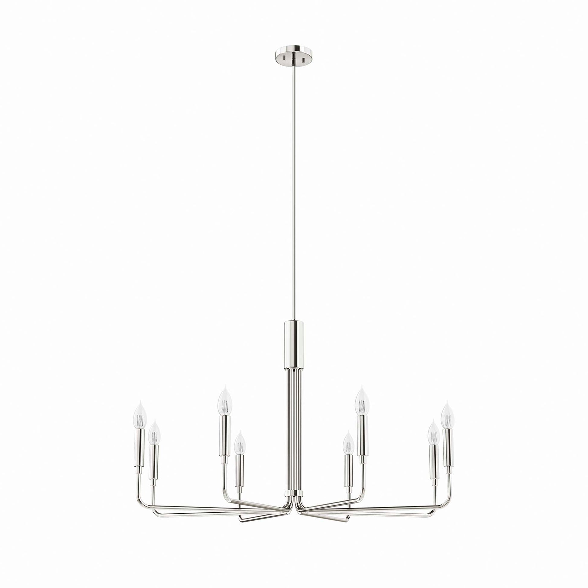 Use:Illuminate your living space with the artful elegance of the Rekindle 8-Light Chandelier that complements a variety of decors from mid-century modern to minimalist contemporary. A timeless piece for your living room, dining room, entryway, or office space, this chandelier light features eight sleek arms that extend out from a cylindrical centerpiece with ceramic lamp holders to host exposed light bulbs. Compatible with sloped ceilings, Rekindle has a ceiling canopy with a swivel adaptor and features a five piece, height-adjustable hanging rod to suit a range of ceiling heights. The Rekindle Light Fixture is ETL listed for damp locations and requires eight E12 light bulbs 60W max or LED equivalent (not included). Luminaires that are ?Suitable for Damp Locations? are approved for areas that are regularly exposed to moisture and condensation. Professional installation required.,8-Light Chandelier