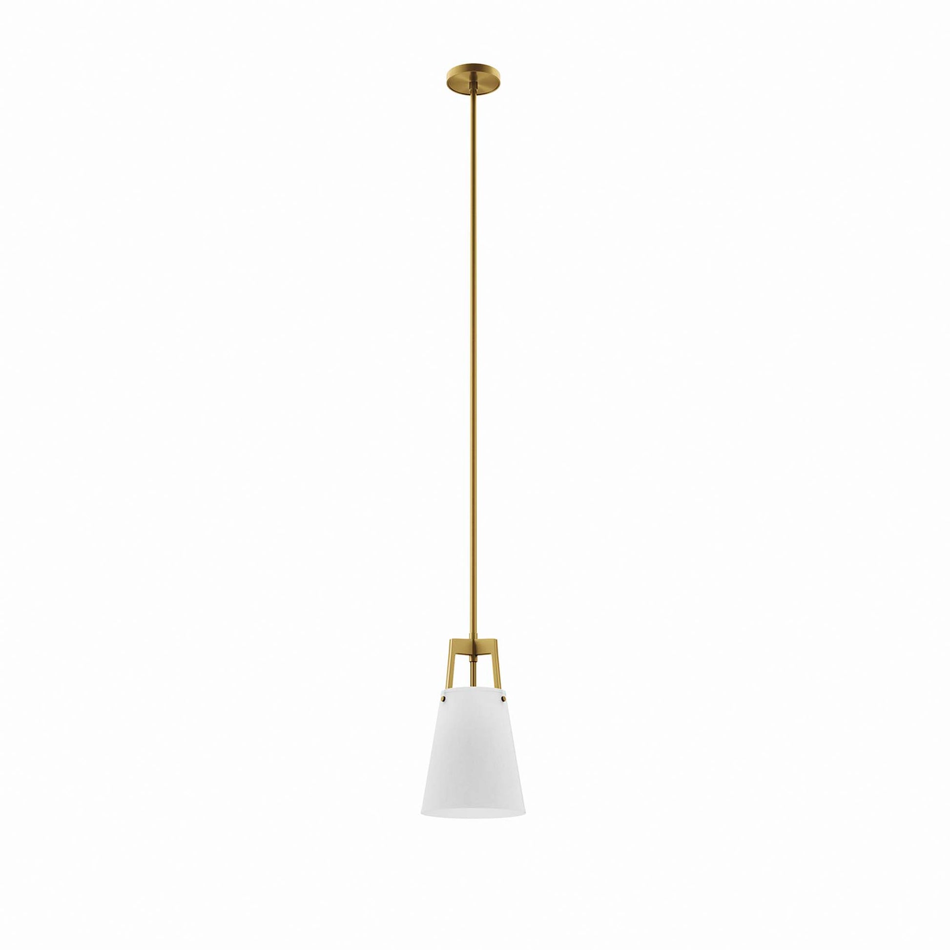 Use:Add a thoughtful glow to your surroundings with the Aspire Pendant Light. This hanging light features a white fabric cone shade secured by a three-pronged frame. Compatible with sloped ceilings, Rekindle has a ceiling canopy with a swivel adaptor and features a five piece, height-adjustable hanging rod to suit a range of ceiling heights. This hanging light is ETL listed and damp rated and requires one E26 light bulb 60W max or LED equivalent (not included). A timeless addition to the bedroom, kitchen, bathroom, or other living space, this 1-light pendant complements a variety of decors including mid-century modern, minimalist, and contemporary. Luminaires that are ?Suitable for Damp Locations? are approved for areas that are regularly exposed to moisture and condensation. Professional installation required.,Modern Pendant Light