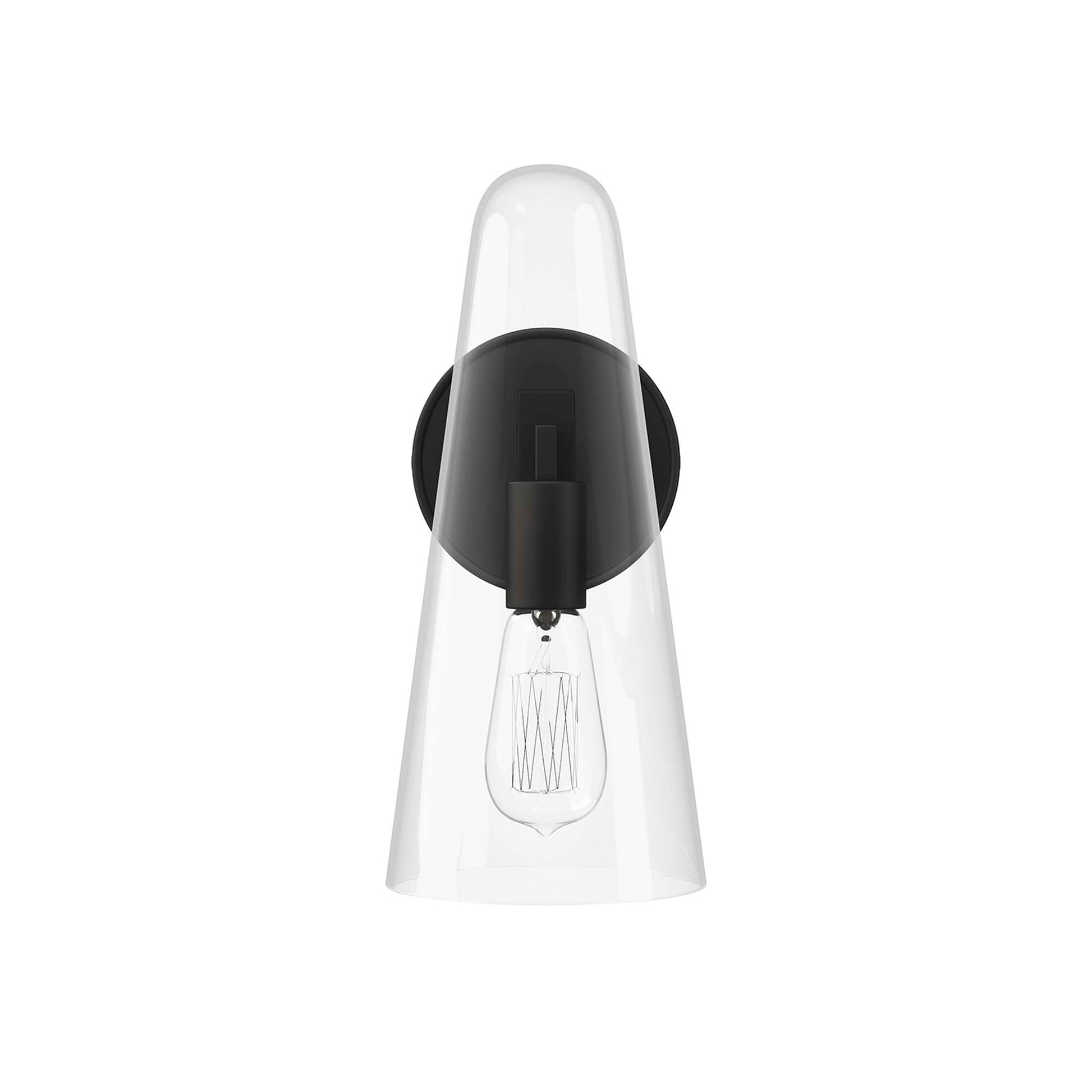 Use:The Beacon Wall Sconce updates a living space, bedroom, dining room, bathroom, hallway, entryway, or office with minimalist sleekness that makes a modern statement. Offering a warm glow through its slim glass cone shade, this wall light is mounted to the wall by a round backplate and requires one E26 bulb 60W max or LED equivalent (not included). ETL Listed for Damp Locations. Luminaires that are ?Suitable for Damp Locations? are approved for areas that are regularly exposed to moisture and condensation. Professional installation required.,Modern 1-Light Wall Sconce