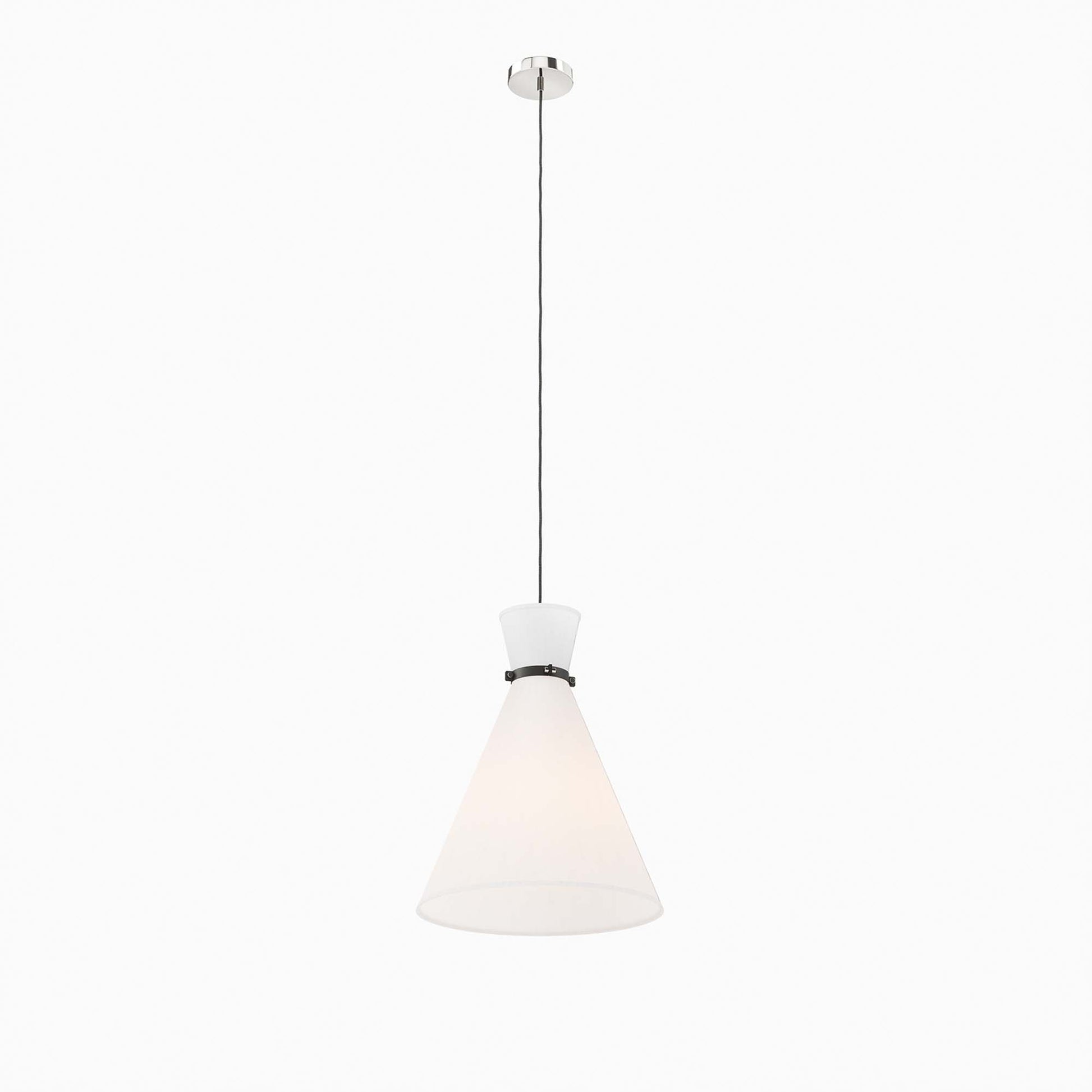 Use:The Starlight 1-Light Pendant radiates a warm glow across its surroundings. Designed to give purposeful task lighting in a bathroom, bedroom, dining room, kitchen, entryway, or other living space, this hanging light steals the show with its contemporary hourglass shape. The fabric shade features a matte black neck cinch. Compatible with sloped ceilings, this pendant light is suspended by a ceiling canopy and an adjustable fabric cable to accomodate a range of ceiling heights. This light fixture requires one E26 bulb 60W max or LED equivalent (not included). Damp rated for use in the bathroom. Professional installation required.,Modern 1-Light Pendant