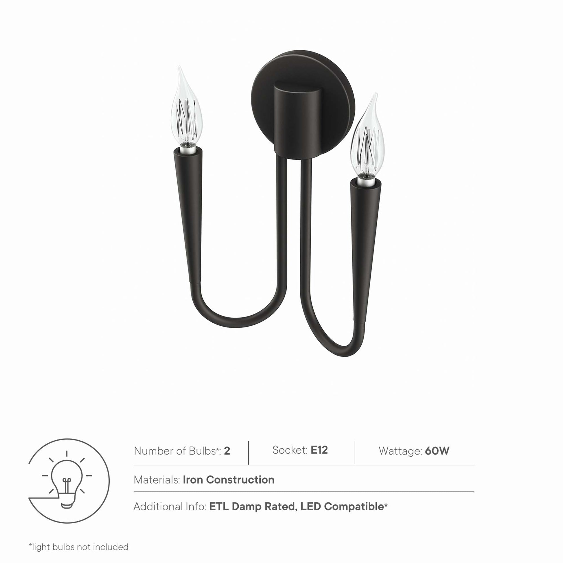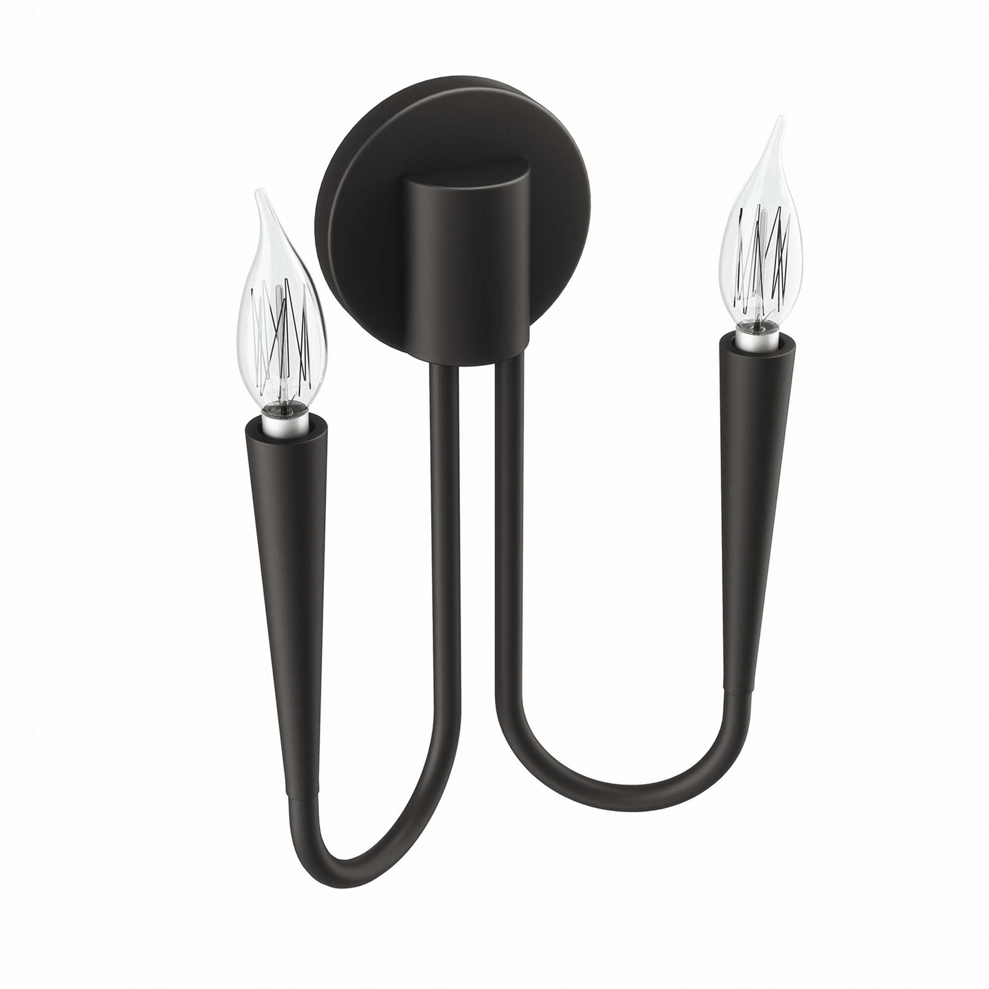Use:Sweeping lines and modern simplicity make the Penrose 2-Light Wall Sconce a sleek addition to a home or apartment. A beautiful light fixture in the dining room, entryway, hallway, bedroom, bathroom, or other living space, this wall light features two upturned metal arms that each hold a single exposed bulb (not included). This wall sconce is by a round backplate and cylindrical base. This wall light requires two E12 bulbs 60W max or LED equivalent (not included). UL Listed for Damp Locations. Luminaires that are ?Suitable for Damp Locations? are approved for areas that are regularly exposed to moisture and condensation like the bathroom. Professional installation required.