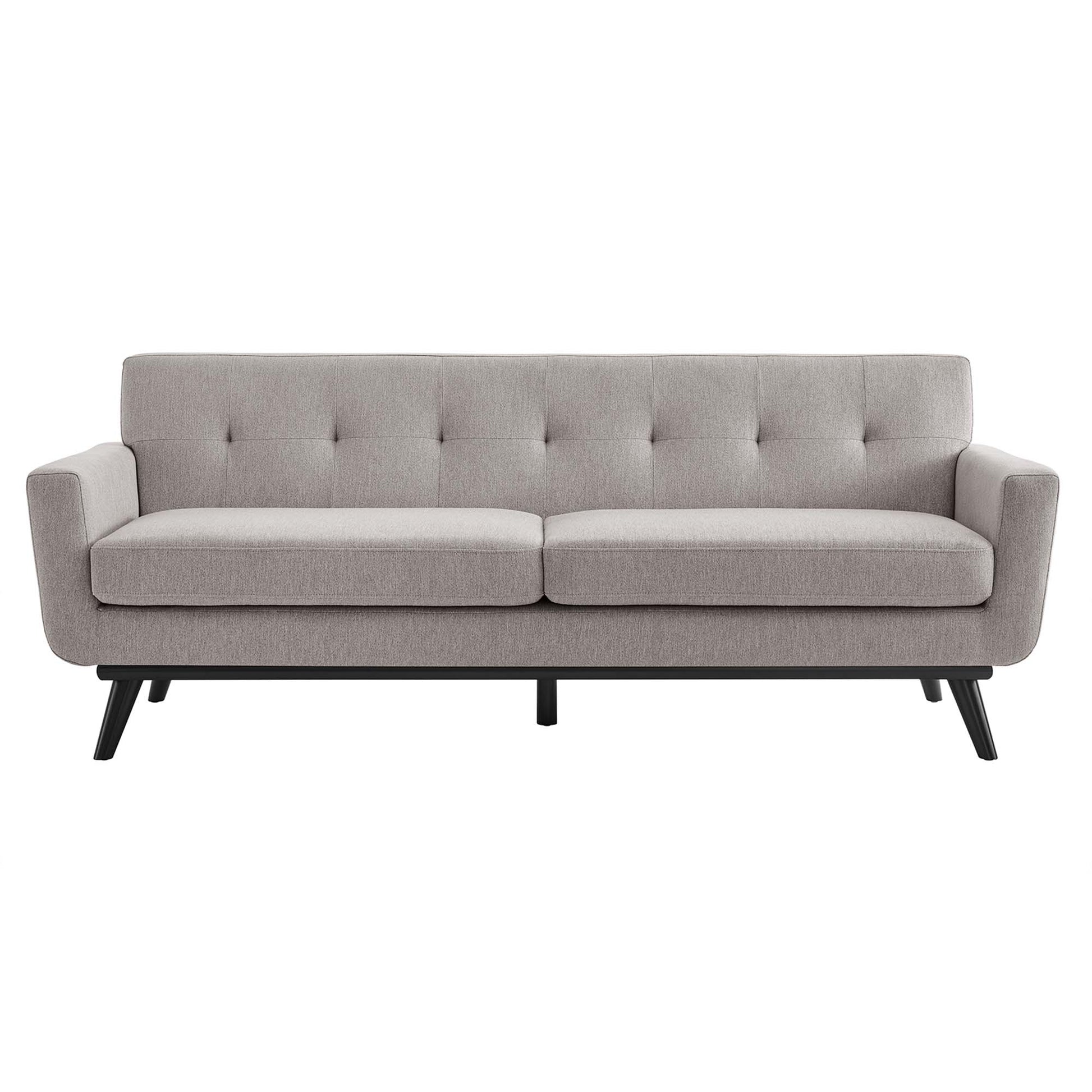 Use:Gently sloping curves and plush seat cushion create a favorite lounging spot. Whether plopping down after a long day at work, settling in with coffee and brunch, or entering a spirited discussion with friends, the Engage Sofa is a welcome presence in your home. Three tufted buttons create eye-catching appeal, adding depth that brings your sitting d??cor to center stage. Four black wood legs and frame supply a solid base to the textured fabric upholstery with subtle herringbone detail.,Textured Fabric Sofa