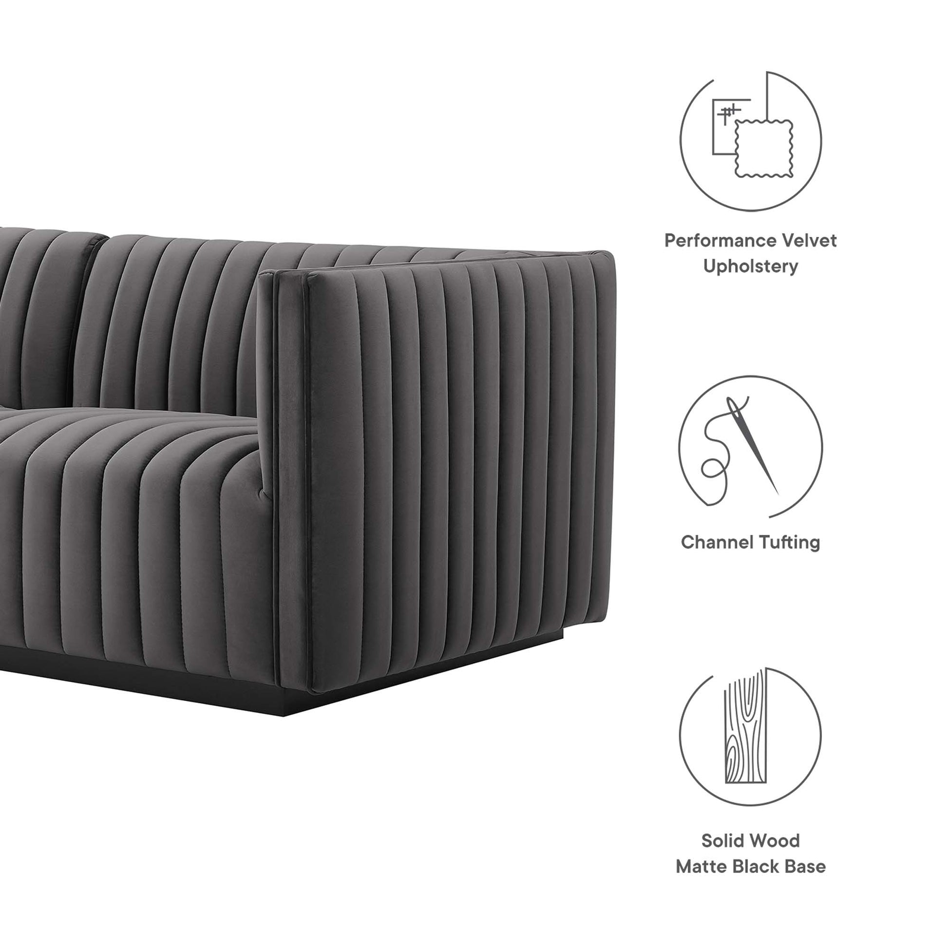 Modway Outlet Conjure Channel Tufted Performance Velvet Loveseat by Modway Living Room Furniture Black Gray - EEI-5764-BLK-GRY