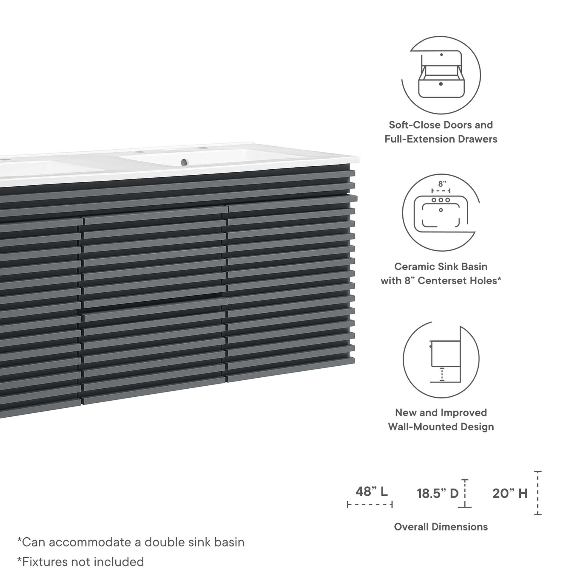 Modway Outlet Render 48" Wall-Mount Bathroom Vanity by Modway Bathroom Furniture Gray White - EEI-5802-GRY-WHI