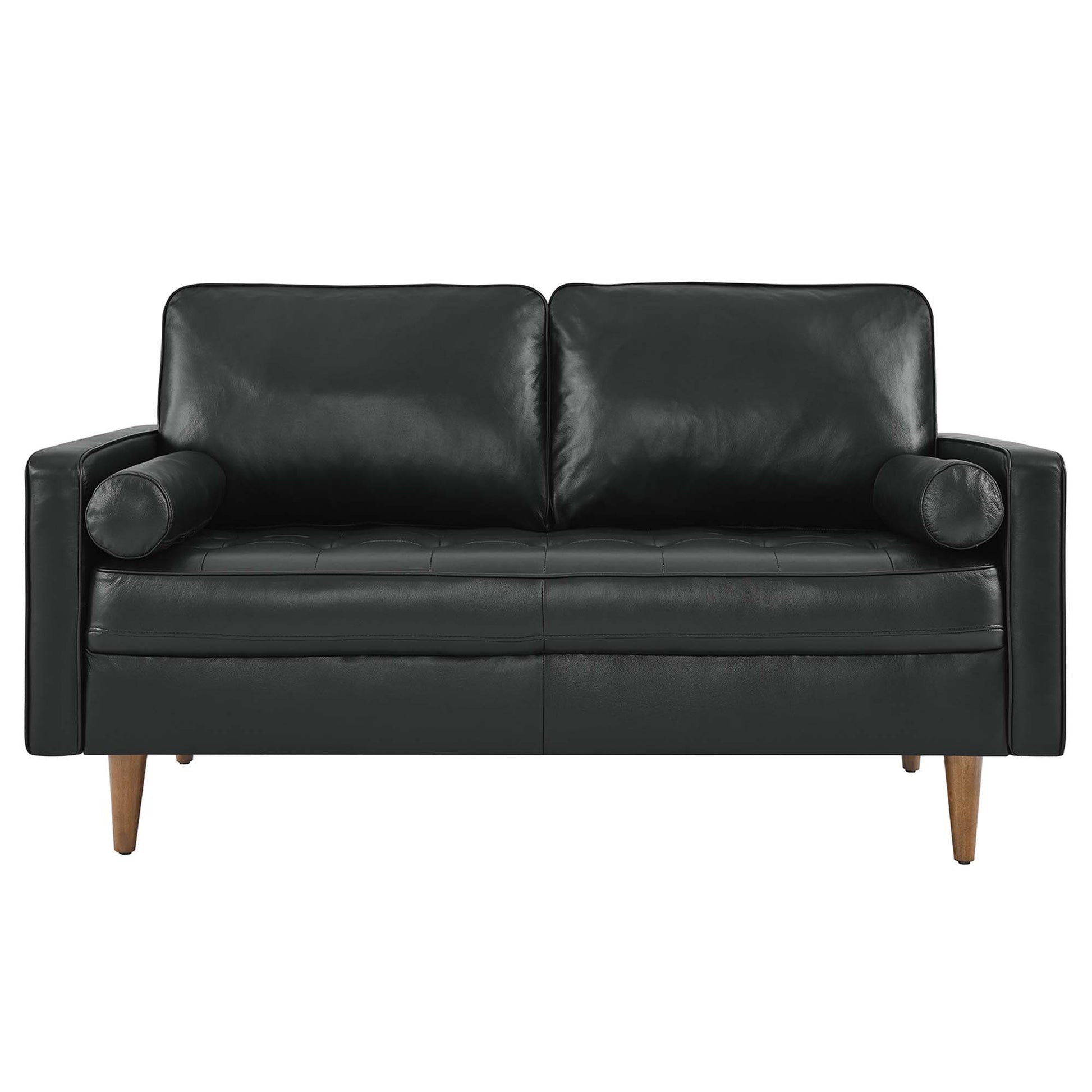 Use:Update your home or apartment with the mid-century style and modern-day convenience of the Valour Leather Loveseat. This comfortable two-seater sofa features a tailored profile with elegant biscuit tufting and two bolster pillows. Covered in beautiful top grain leather upholstery, Valour has dense foam padding, an innerspring pocket structure, and a sinuous spring support system for a comprehensive seating experience that fits perfectly into apartment settings. This luxe modern loveseat comes with walnut-stained wood legs and non-marking foot caps to protect floors. Say goodbye to the days of hauling heavy furniture. This tufted loveseat ships in a portable box for easy maneuvering. Weight limit: 660 lbs.,Mid-Century Modern Loveseat