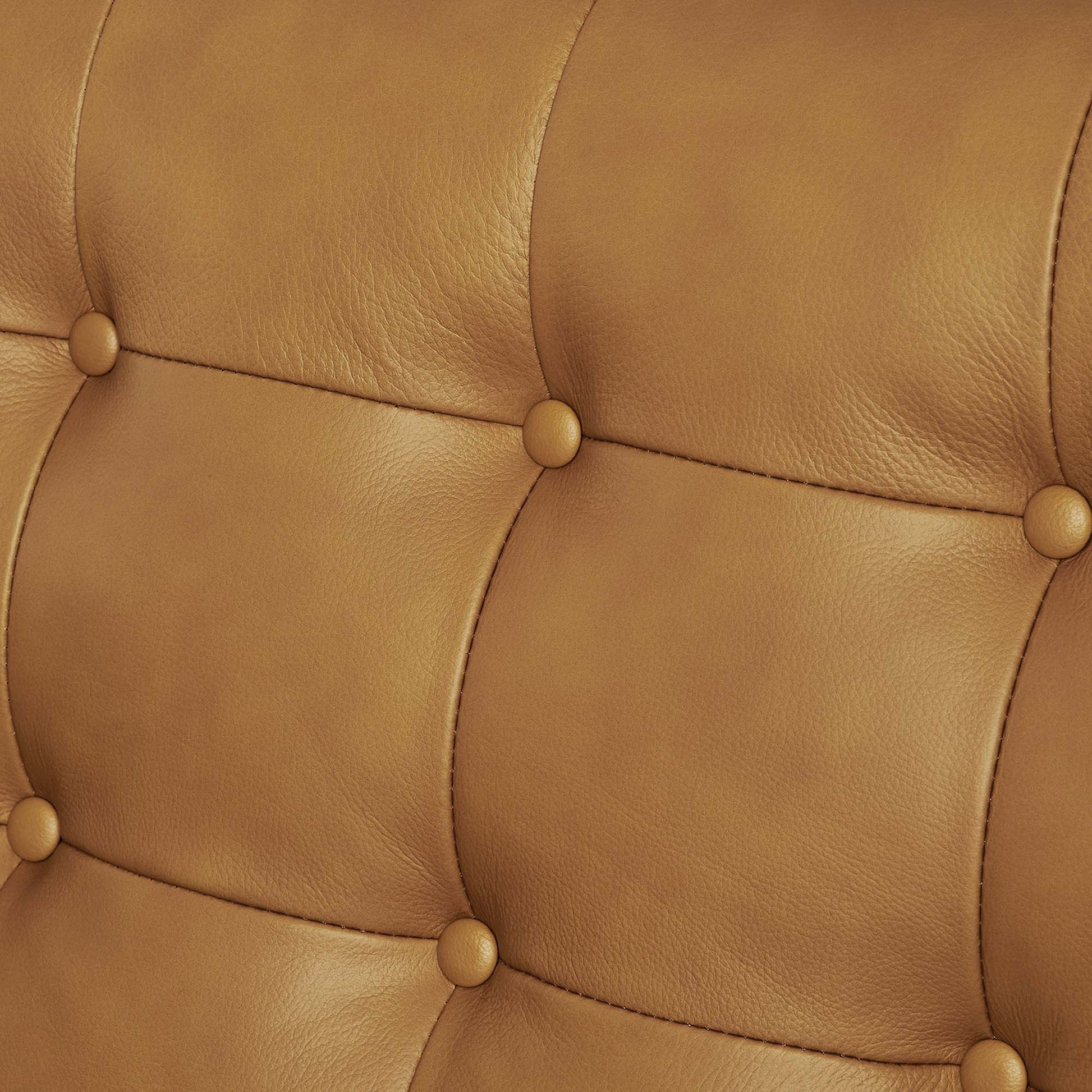 Use:Reinspire decor in a home, office, or apartment with the Exalt Tufted Leather Sofa. Featuring deep button tufting and a streamlined silhouette, this upholstered sofa boasts contemporary style and mid-century modern design. Upholstered in smooth leather, this tufted sofa is complete with dense foam padding and a sinuous spring support system for a premium seating experience. This leather sofa is crafted with durable solid wood and plywood and rests on four wood legs with non-marking foot pins to protect flooring. Bring retro modern aesthetics to your living room, bedroom, lounge room, den, or home office with Exalt. Assembly required. Sofa Weight Capacity: 992 lbs.,Tufted Mid-Century Sofa