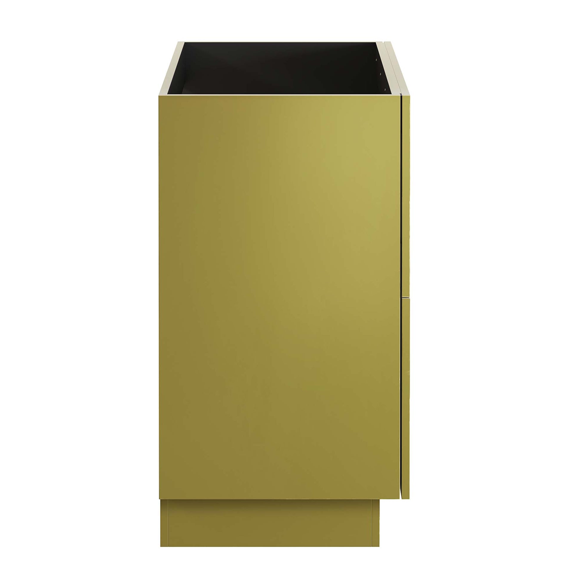 Use:Experience a harmonious blend of luxury and practicality with the Quantum 36" Bathroom Vanity Cabinet. Durably crafted from MDF and showcasing a refined gold finish, this vanity cabinet radiates sophistication. A spacious full-glide drawer offers ample storage for bathroom essentials, complementing the sleek design. Assembly is required, promising a rewarding setup for this functional, modern vanity. Sink basin and fixtures not included.,Modern Bathroom Vanity