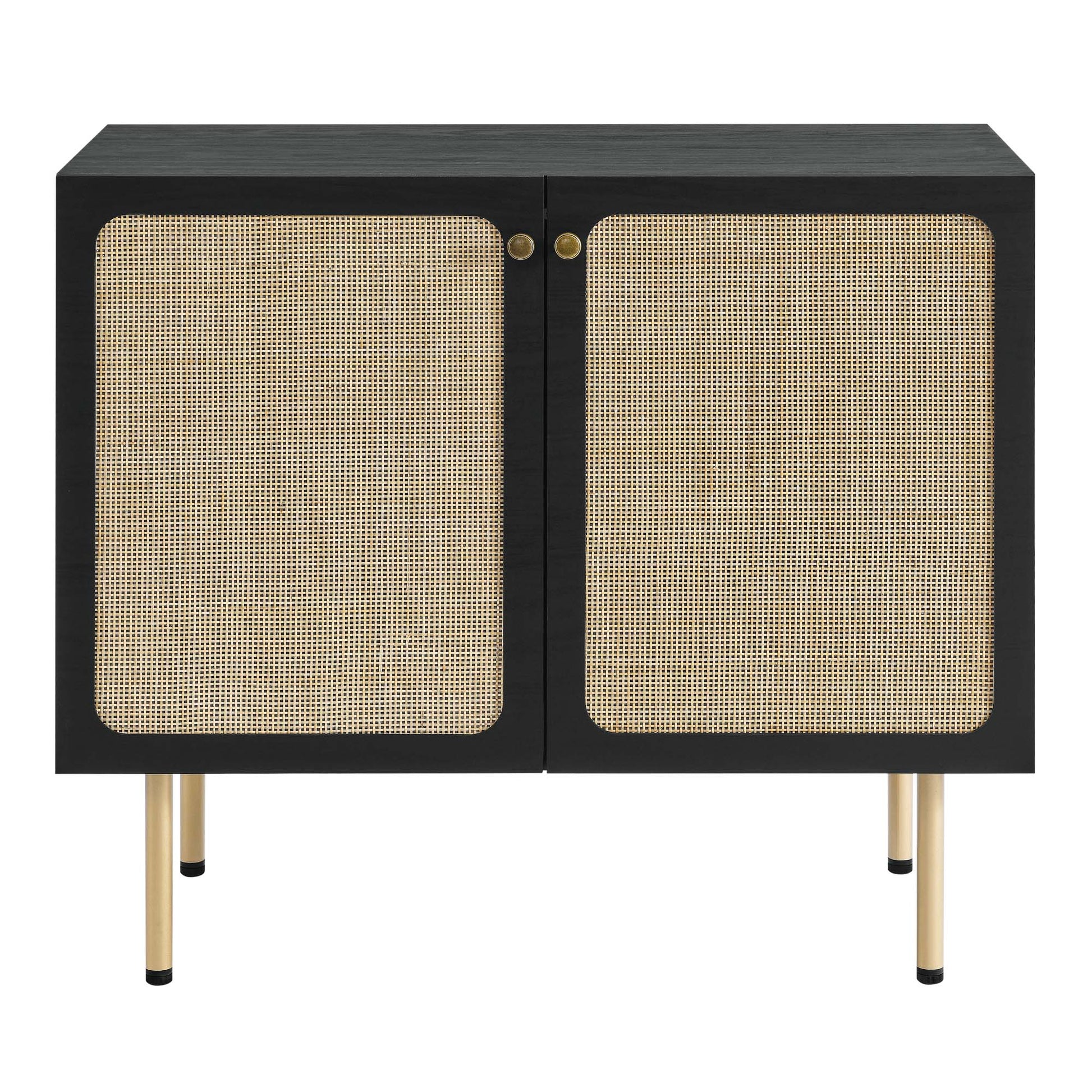 Use:Refresh your living space with the textured detail of the Chaucer Accent Cabinet. Featuring beautiful rattan weaving on the doors, this display cabinet updates a living room, entryway, home office, hallway or lounge area and can also serve as a bar cabinet in the dining room. A spacious shelving area hidden behind the hinged doors offers ample storage space for linens, home d??cor, china, silverware, barware, and more. Resting on sleek legs with adjustable feet for added stability, this accent cabinet is durably crafted with particleboard and wood grain laminate to bring natural organic aesthetics to your d??cor. Assembly required. Shelf Weight Capacity: 22 lbs.,Modern Accent Cabinet