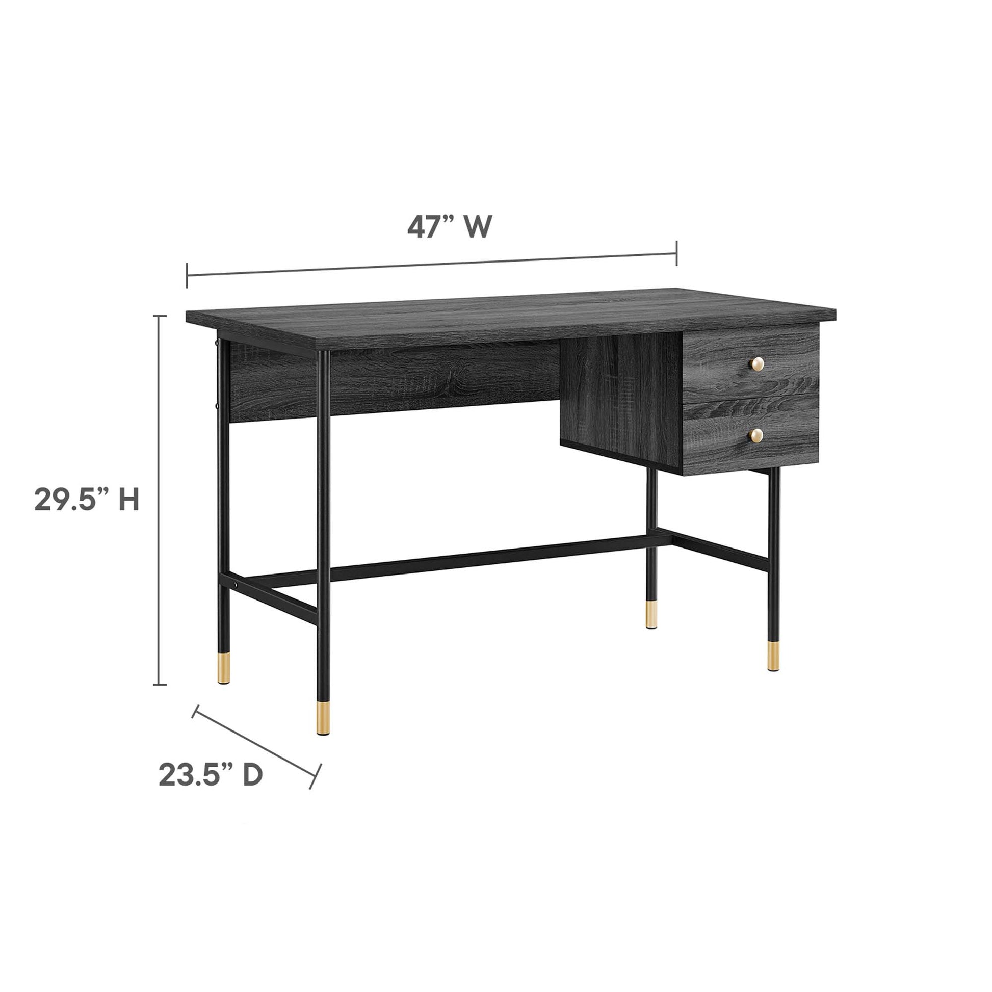 Use:Focus on the task at hand amidst the modern style and functional design of the Nexus Office Desk. Crafted with particleboard and paper laminate that boasts a beautiful wood grain design, this computer desk brings organic aesthetics to your workspace. The sleek tubular metal frame is finished with gold accents for an elegant touch. This home office desk is complete with two full-glide drawers to store office essentials, while the spacious tabletop provides plenty of room to spread out during the work day. With a timeless look and functional design, this desk is a stylish addition to a home office, college dorm, or spare bedroom. Assembly required. Weight capacity: 200 lbs.,Modern Home Office Desk