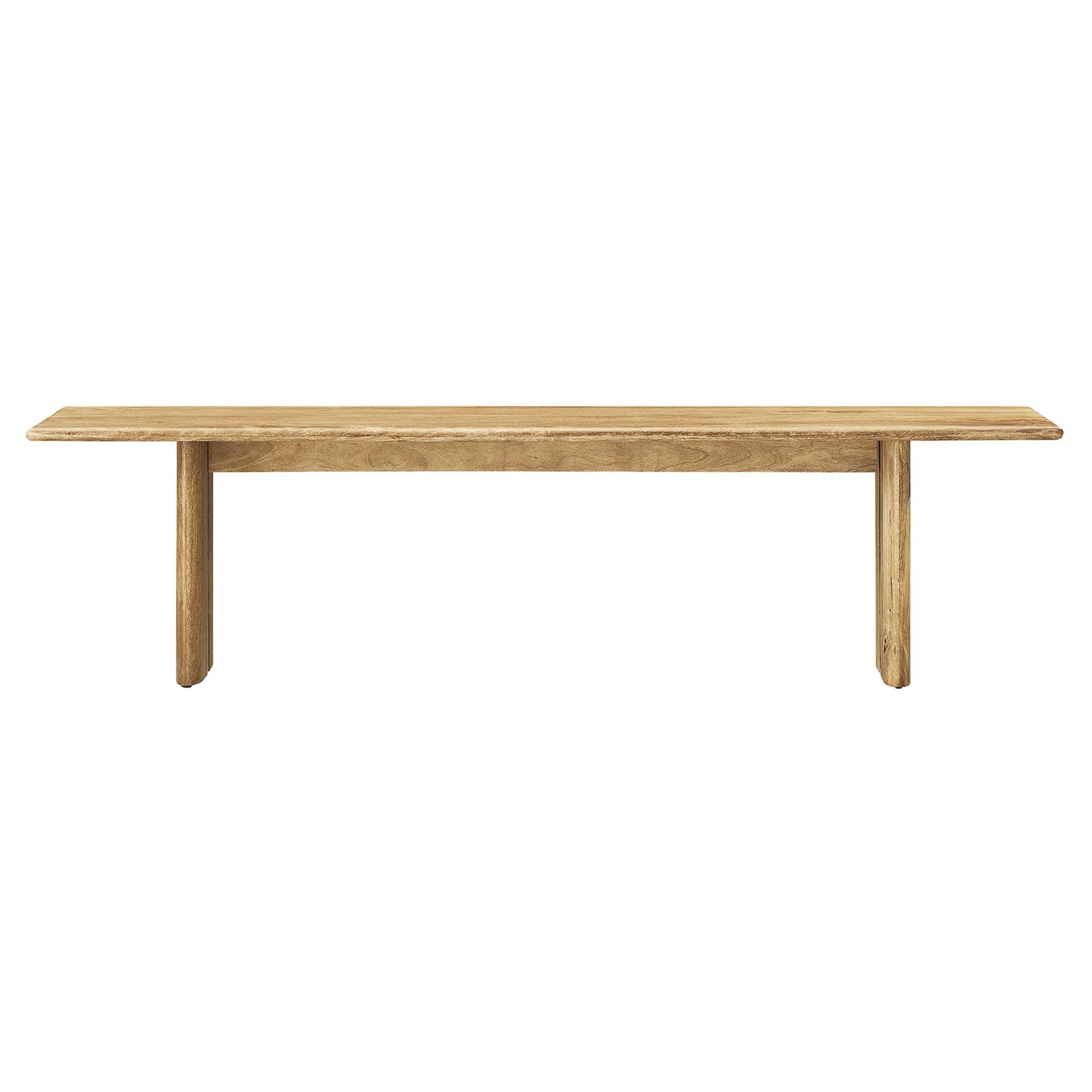 Use:Experience the seamless fusion of natural elegance with the Amistad 72" Wood Dining Bench. This versatile piece breathes life into your dining space, living room, mudroom, or even the bedroom with its warm, inviting charm, and provides endless opportunities for seating or a simple decor accent. Meticulously crafted with authentic mango wood, this dining bench's durability matches its stunning aesthetics. Further enhancing its functionality, adjustable non-marking foot pads ensure stability while safeguarding your flooring from scuffs and scratches. Perfect for any occasion of comfort and modern farmhouse style, this 72" bench can comfortably seat up to four people in the dining room and serve as a stylish accent in other living spaces. Assembly required.