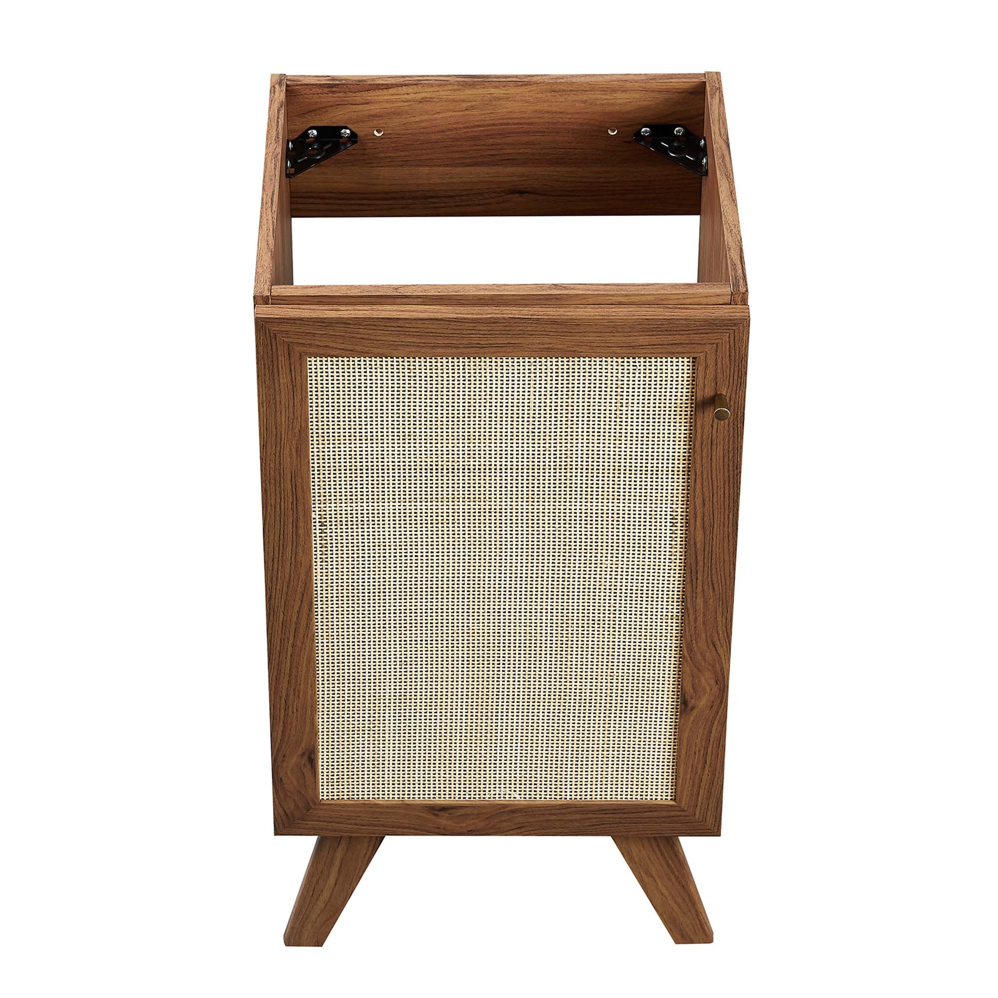 Use:Introduce refreshing style to your restroom with the Soma 18" Bathroom Vanity Cabinet. Showcasing a beautiful rattan weave on the cupboard door, this vanity cabinet brings organic aesthetics and modern functionality to any bathroom or powder room. Crafted from durable MDF and particleboard with a natural wood grain finish, this cabinet features an adjustable shelf, providing easy customization for arranging towels, toiletries, and bathroom necessities. Complete with a metal doorknob with a brushed gold finish and soft-close hinges, this bathroom vanity cabinet is designed for quiet and effortless functionality. Resting on splayed legs, the Soma Bathroom Vanity includes non-marking foot caps to protect flooring. Assembly required. Fixtures and sink basin not included. Weight Capacity: 200 lbs.,MDF and Particleboard