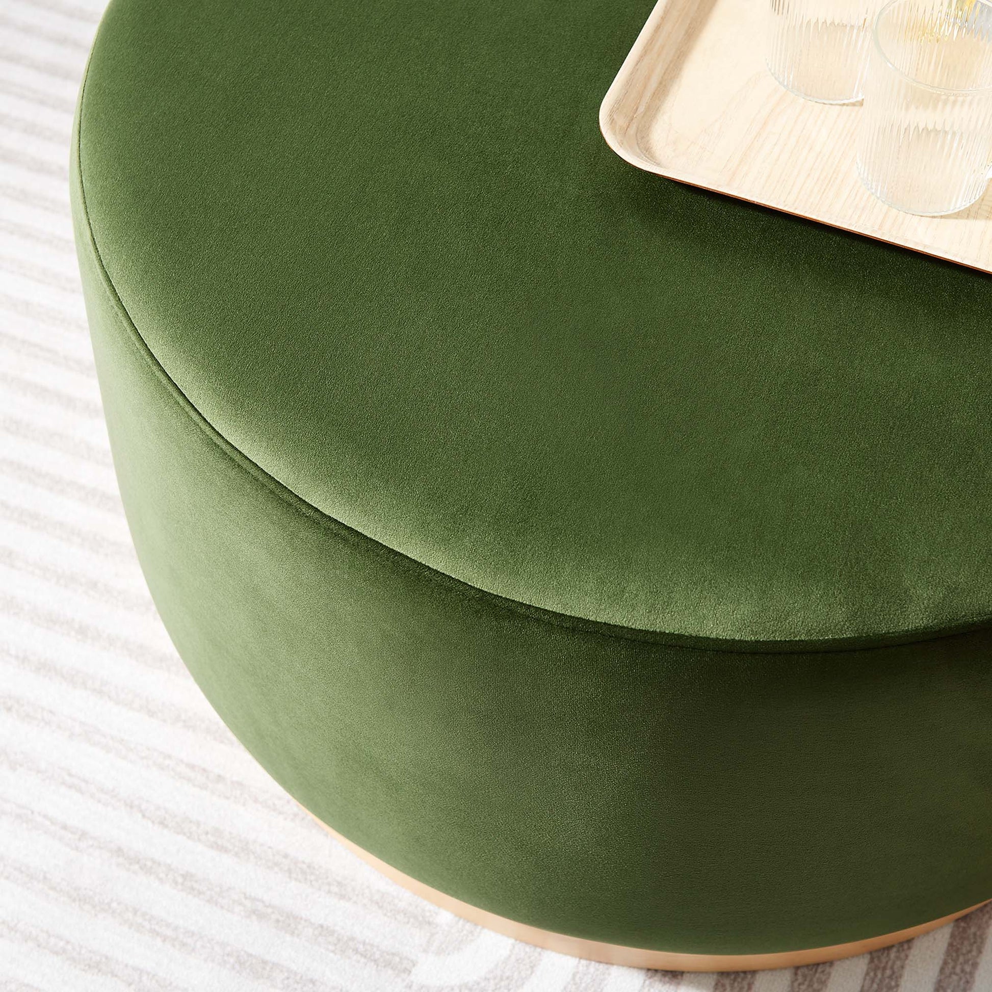 Modway - Tilden Large 29" Round Performance Velvet Upholstered Ottoman by Modway Living Room Sofas and Armchairs Green - EEI-6648-MOG-NAT