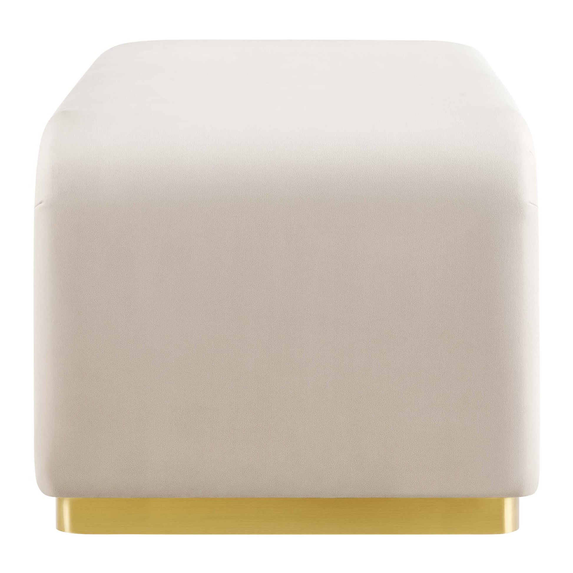 Use:Let the Koda Performance Velvet Ottoman redefine your space with its style and adaptability. Crafted with a sturdy plywood frame, this large ottoman exudes a soft and flowing silhouette. Koda features stain-resistant performance velvet upholstery and a unique waterfall design. This multifunctional piece serves as both a chic ottoman and a fashionable coffee table, effortlessly blending classic design elements with a touch of contemporary allure. The dense foam padding ensures a comfortable experience, whether as extra seating, a footrest, or a stylish surface in your living room or lounge area. The Koda Upholstered Ottoman stands elegantly on a solid metal base with non-marking adjustable foot caps, ensuring stability while protecting your flooring. Assembly Required. Weight Capacity: 662 lbs.