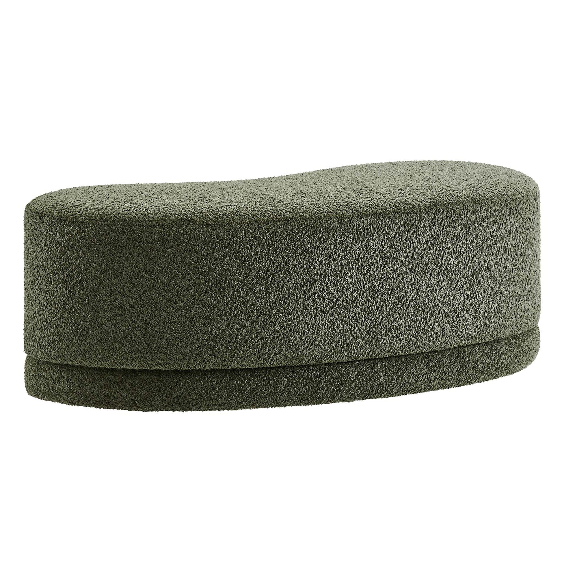 Use:The Nimbus Ottoman, with its organic contours and curved lines, brings a touch of modernity to any living room or bedroom. Wrapped in a soft chenille fabric with a texture similar to boucle, this upholstered ottoman elevates comfort as both a bedroom ottoman and a modern living room furniture piece. The solid frame and dense foam padding of this bed ottoman provide a stable base, rendering it a sturdy footstool perfect for propping up your feet. The Nimbus upholstered curved bench includes non-marking plastic floor glides to safeguard your floors. Whether it's used as a bedroom bench or an innovative upholstered coffee table, this soft fabric ottoman marries style with multipurpose appeal. The Nimbus accent ottoman arrives fully assembled and ready to use. Weight Capacity: 804 lbs.
