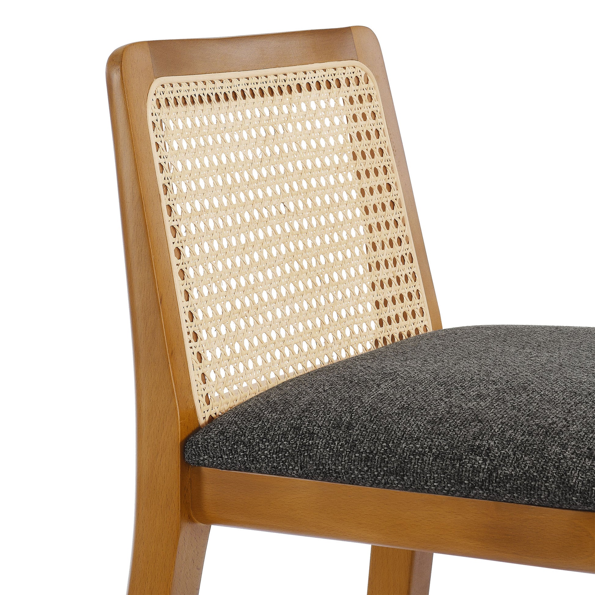 Use:Elevate your kitchen or home bar with the Monarch Bar Stool, a stunning blend of French country elegance and modern farmhouse style. This wooden barstool features a sturdy beech wood frame and a rattan backrest with intricate cane webbing, granting both style and durability. The dense foam padded seat, covered in soft fabric upholstery, provides lasting comfort, making it a comfortable padded bar stool perfect for longer gatherings. Designed as a modern bar-height stool, Monarch offers versatile placement around a bartop or bar-height table. Whether used as a single cane back bar stool or as a farmhouse accent stool, it enhances your dining experience with its refined aesthetic and protects floors with its non-marking floor glides. This cane bar stool fits seamlessly into any d??cor, making it perfect for both formal gatherings and casual meals. The Monarch Bar Stool combines traditional craftsmanship with contemporary style, making it a versatile wood rattan barstool with natural cane mesh for your home bar or kitchen. Weight Capacity: 330 lbs.,Beech Wood Frame