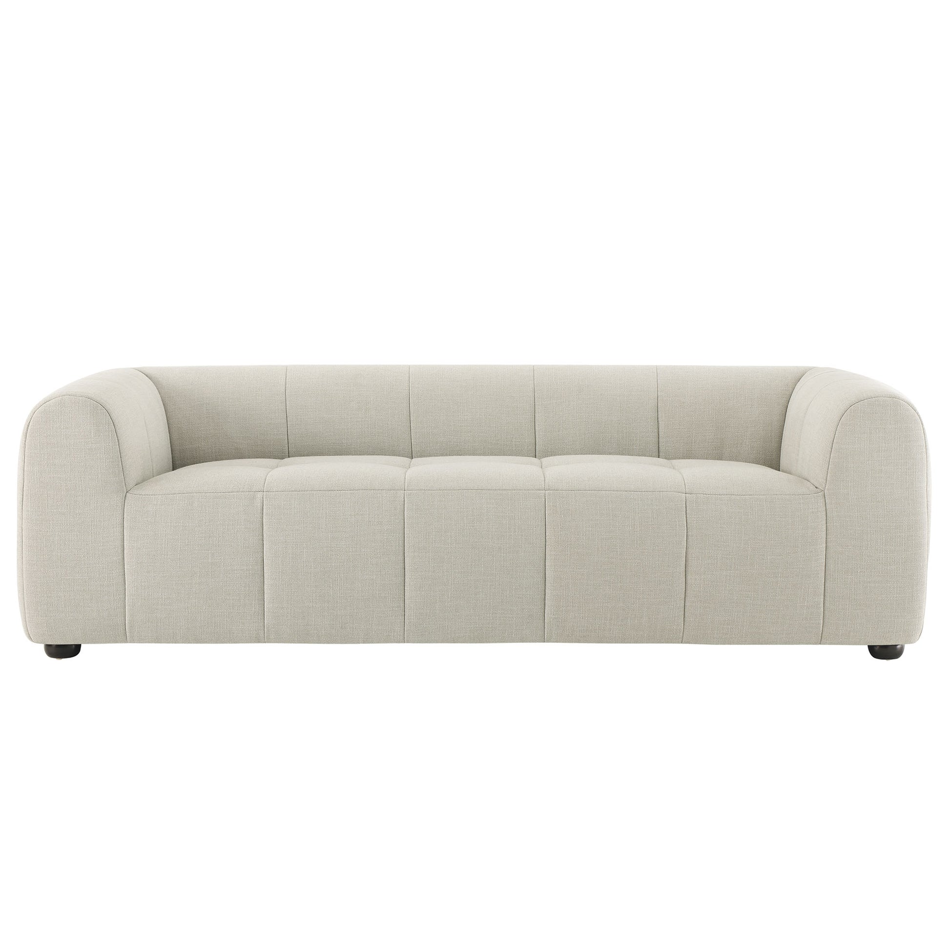 Use:Step into the world of refined relaxation with the Liana Upholstered Fabric Sofa, a stylish centerpiece that combines comfort with a chic, casual aesthetic. Embodying a retro-modern look, the Liana 3 Seater Sofa features dense foam padding encased in fabric upholstery, perfect for sinking into after a long day. Enhancing the soft couch?s allure, subtly tufted seats blend with a neatly stitched grid pattern that extends into the gently curved armrests and backrests, imparting a touch of geometric flair. Its low profile and deep seating are thoughtfully designed to cater to contemporary aesthetics while providing ample space to relax. Durably constructed and supported by solid wood bun feet with non-marking floor glides, the Liana Upholstered Sofa Couch stands strong, ready to support countless lounge times. Perfectly at home in a chic modern living room or a mid-century modern lounge, the Liana Deep Seat Sofa beckons you to unwind in style. Weight Capacity: 800 lbs.