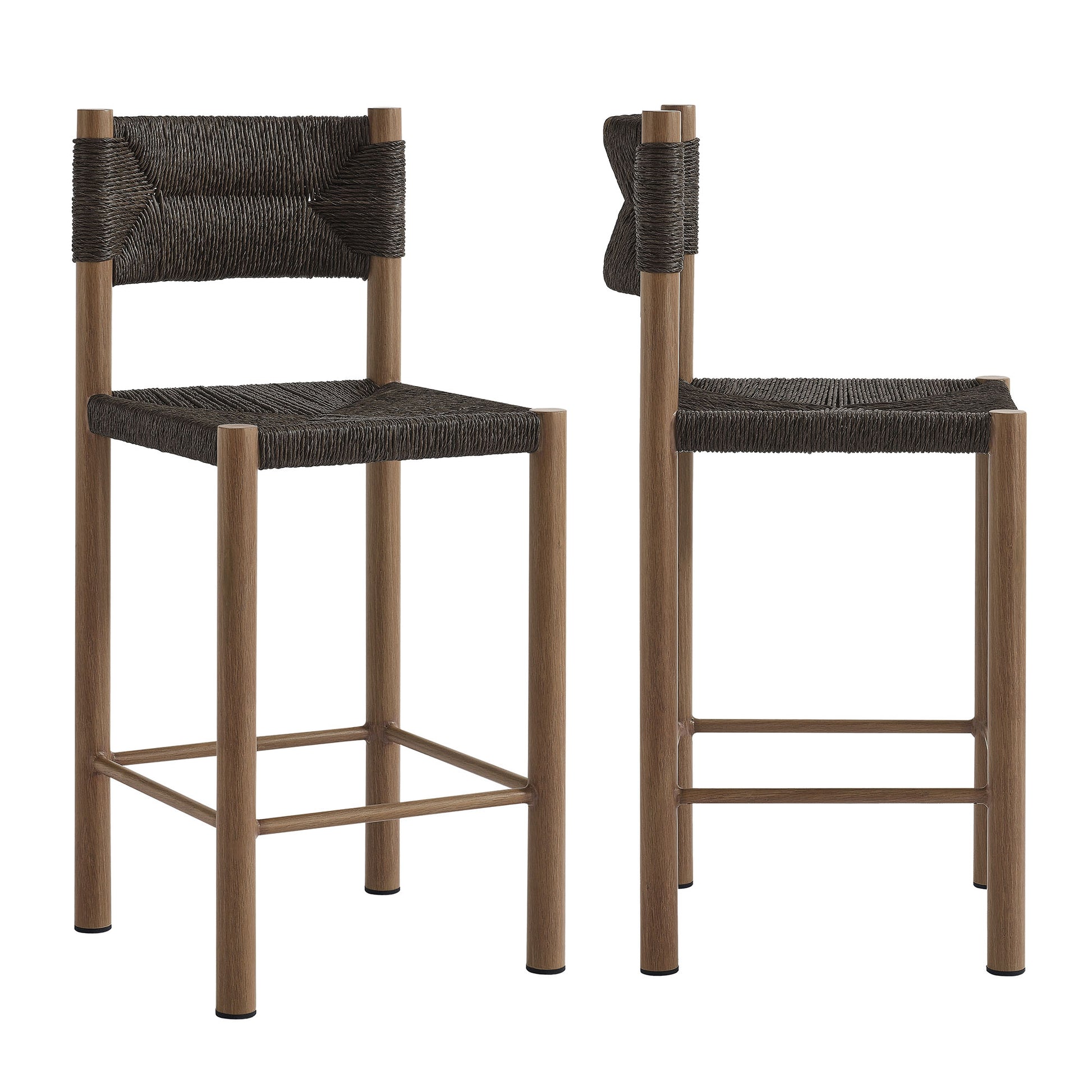 Modway - Parkland Outdoor Patio Rattan and Aluminum Counter Stools Set of 2 by Modway Outdoor Furniture Bar and Dining Brown - EEI-6983-WAL