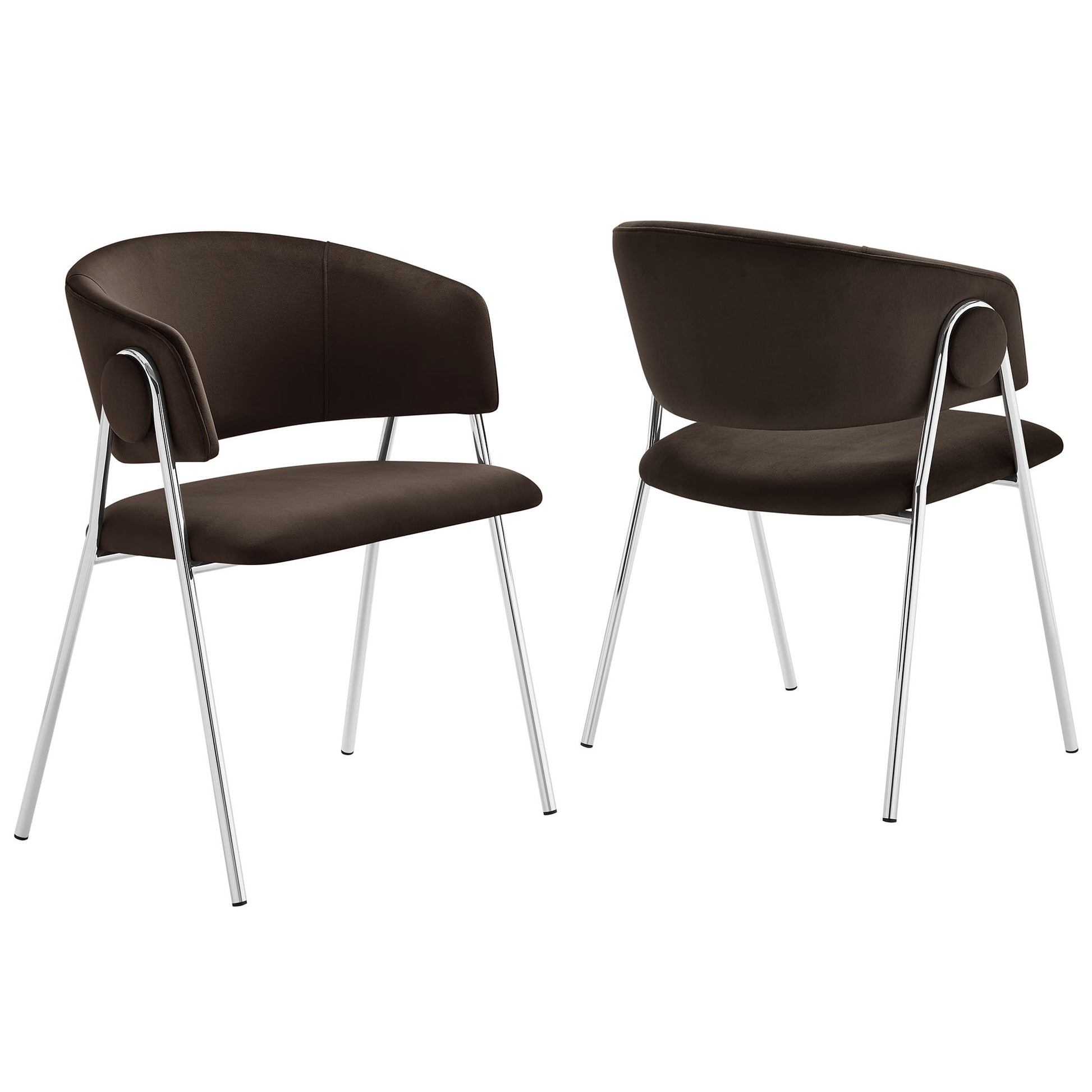 Use:Meet Nella?a pair of velvet dining room accent chairs that blend vintage charm with versatile functionality. The seat and backrest on these padded chairs are each elegantly upholstered in stain-resistant performance velvet, and feature a stylish gap between them, shaping the elegant contour of an open back armchair. This set of 2 barrel dining chairs stand on splayed metal legs that gracefully ascend and curve around a decorative round button, enhancing the club chair's retro aesthetic. Each leg is thoughtfully finished with foot pins to protect your floors, ensuring practicality complements style. The Nella velvet kitchen table chairs do require assembly but simple instructions are included, so you can have these comfy dining chairs set up in no time. Ideal for placement around a dining table or as living room accent chairs, these curved back dining armchairs are designed to complement your interior and offer a delightful seating experience. Perfect for those who value a mix of contemporary and mid-century styles, the Nella velvet accent dining chairs introduce a tasteful highlight to any area. Weight Capacity: 330 lbs.