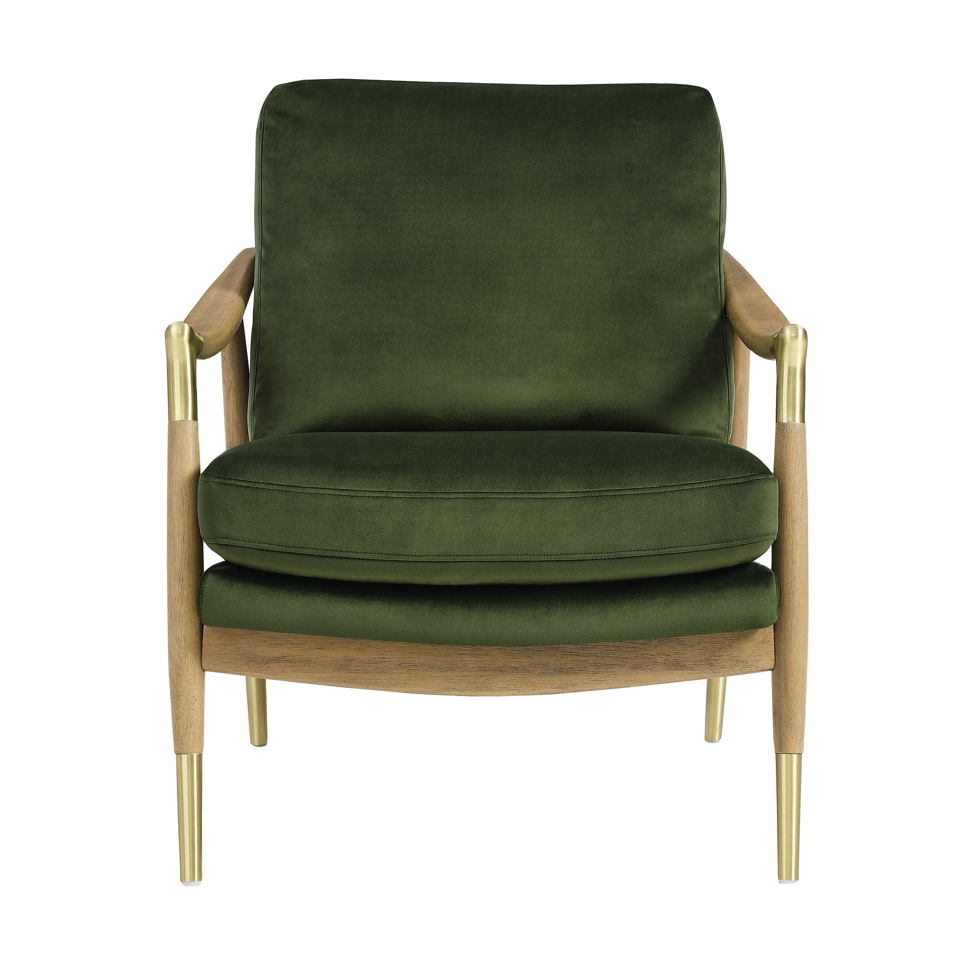 Use:Enhance your living space with the Langford Performance Velvet Living Room Chair, where elegance meets comfort in a timeless mid-century modern design. Upholstered in stain-resistant performance velvet, this accent chair adds a sophisticated touch with its inviting, plush texture and resilient finish. Brass accents on the legs and corners of the swooped armrests bring a refined charm, highlighting the velvet chair?s clean lines and classic structure. Crafted with a solid kiln-dried wood frame, this accent chair with arms is as durable as it is stylish, offering long-lasting support and comfort. Langford's cushions provide a consistent look and feel, ensuring this modern armchair remains as cozy as it is chic. Perfect for reading nooks, living rooms, or as a striking bedroom accent, the Langford Reading Nook Chair combines mid-century modern flair with modern functionality. Assembly required, with clear instructions provided for an easy setup. Weight Capacity: 300 lbs.