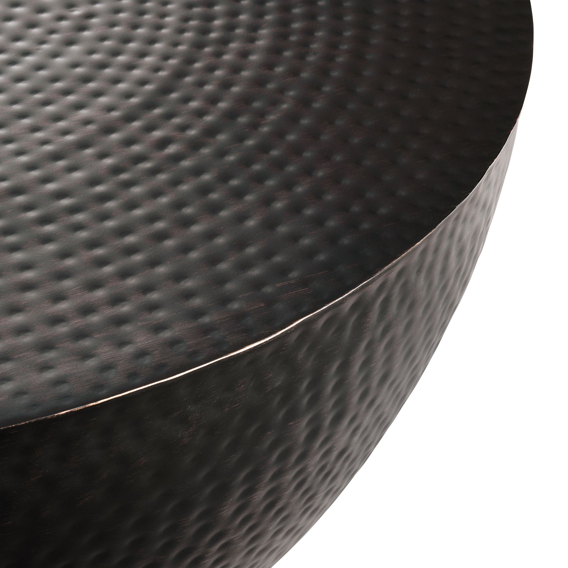 Use:Introduce a sculptural touch to your living room with the Mella Hammered Round Coffee Table. Featuring a unique hammered texture on the top and base, this drum-style coffee table offers a bold, modern look. The wide surface is perfect for displaying d?????cor, serving drinks, or enjoying a cozy coffee moment. With its distinct, rounded silhouette and hammered detailing, the Mella Coffee Table makes an eye-catching addition to contemporary living rooms. Equipped with a protective pad on the bottom to safeguard your floors, this table blends style and function seamlessly into your space. Weight Capacity: 226 lbs.
