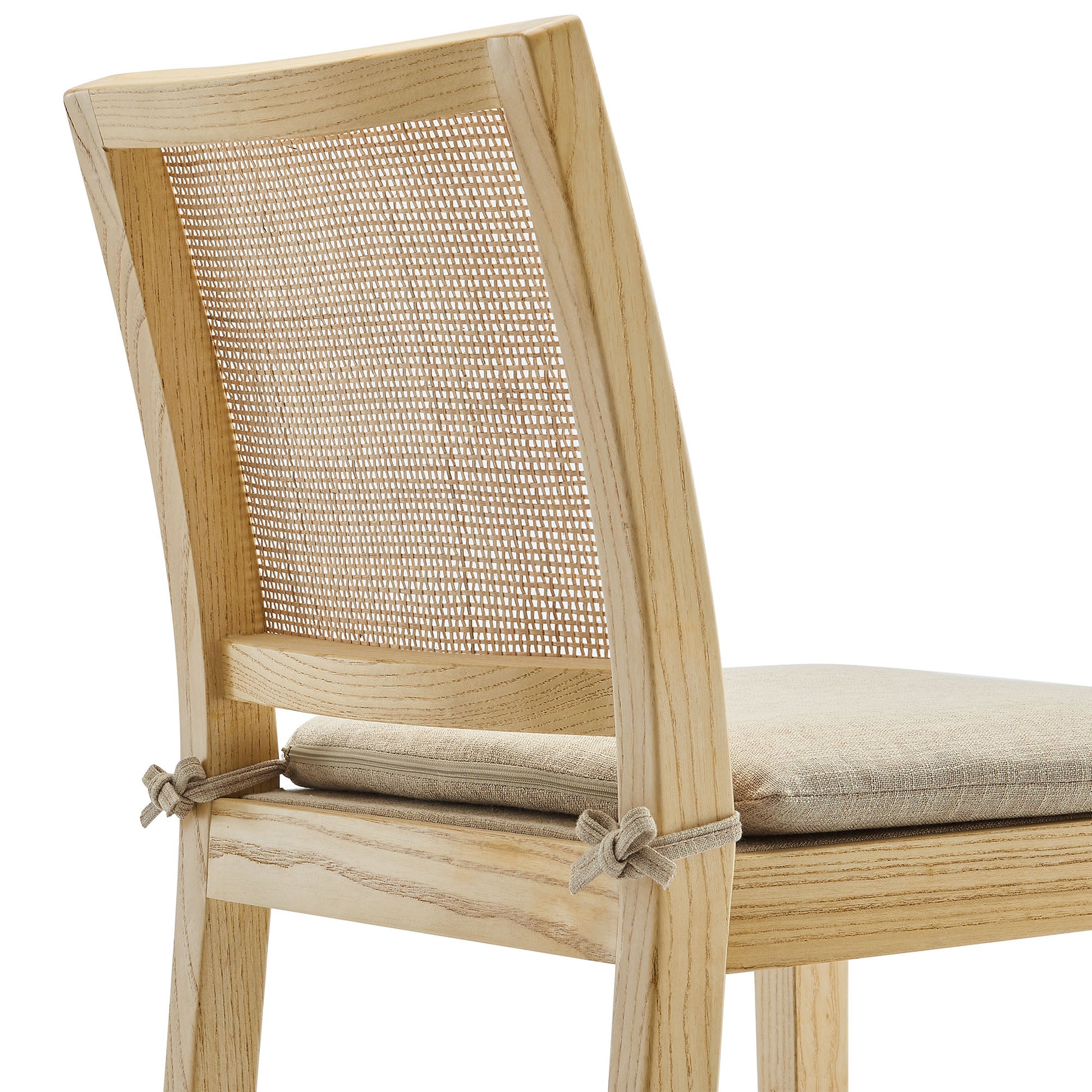 Use:Bring a mix of farmhouse charm and modern design to your kitchen or bar area with the Ovard Rattan Bar Stool. This elegant stool features a solid elm wood frame paired with a natural rattan mesh backrest to bring modern farmhouse style and a coastal airy feel to your dining or bar space. The padded fabric seat cushion is both removable and secured with charming ties, offering comfort and flexibility. Its streamlined armless design and stretchers are ideal for bar tables, kitchen counters, or casual dining areas. Non-marking floor pins protect your floors, and the rattan bar stool arrives fully assembled for hassle-free setup. Weight Capacity: 300 lbs.