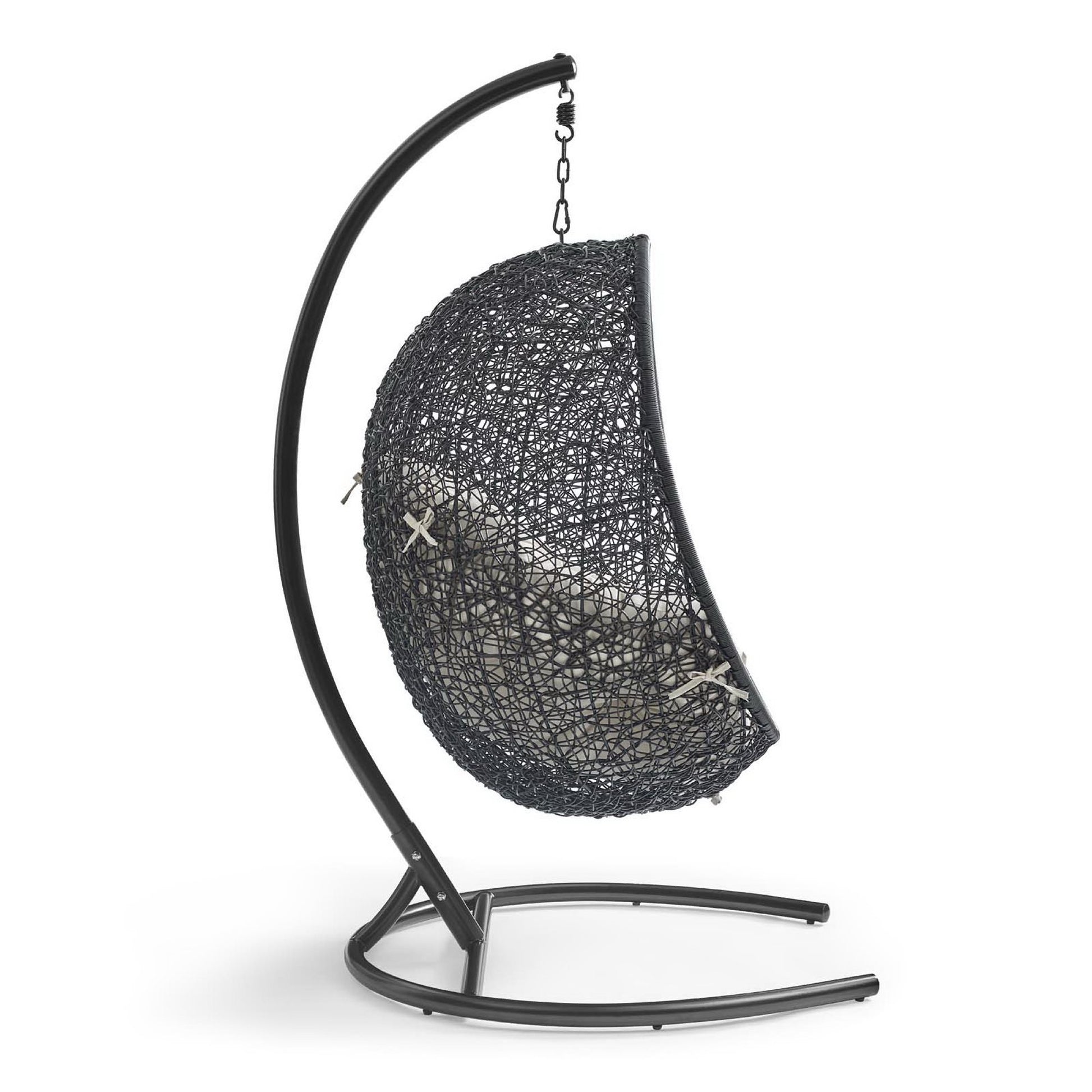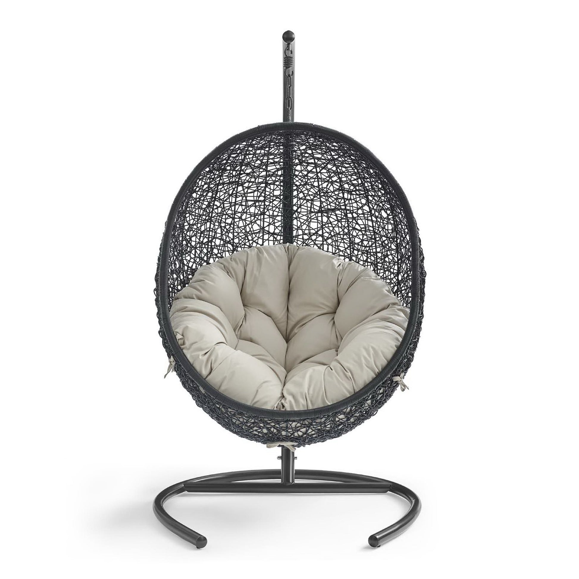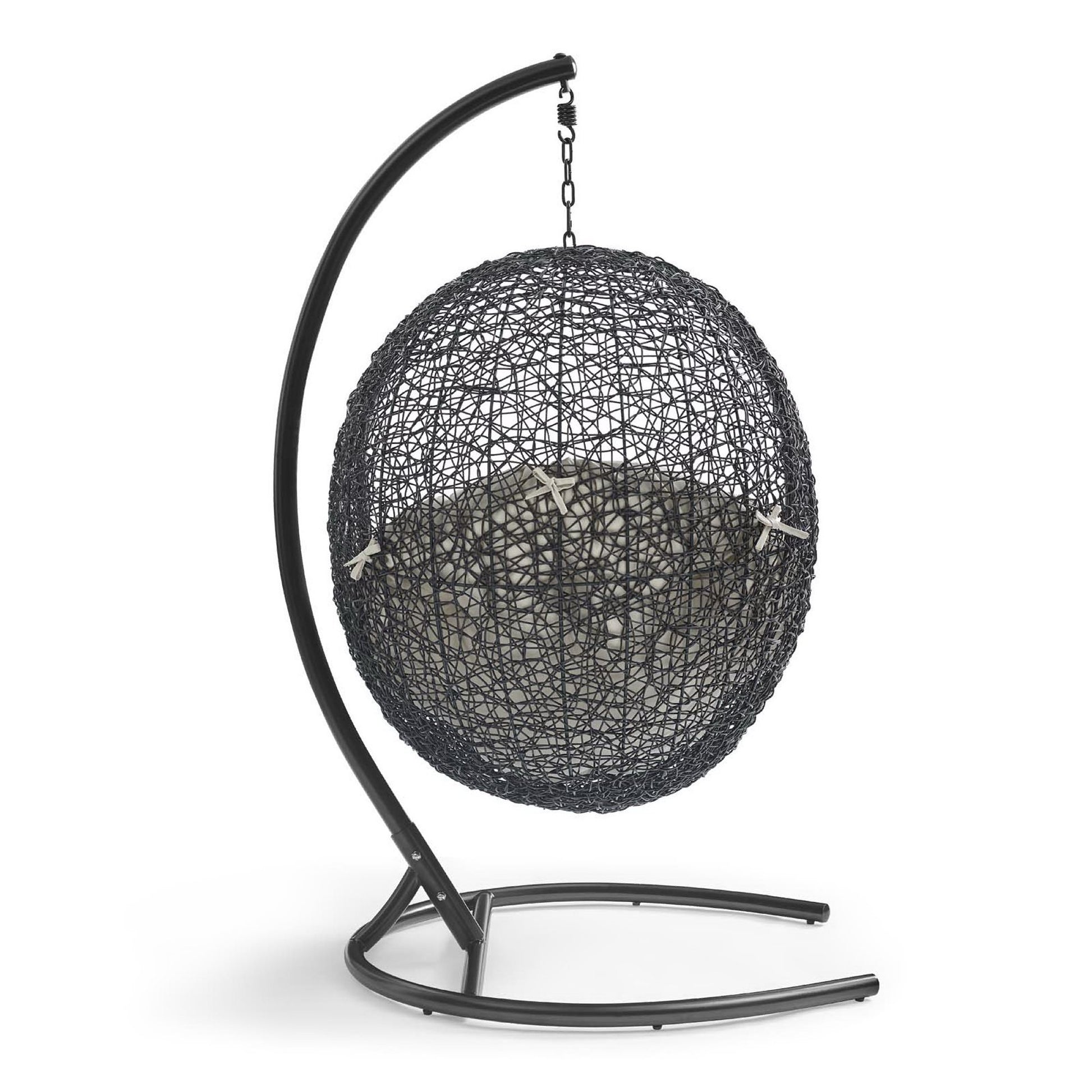 Use:Embark on moments of metamorphosis and rebirth with an exotic hanging outdoor swing chair. Transform the mundane to heightened states of consciousness with Encase Outdoor Swing Chair. This hanging swing chair is comprised of a sturdy espresso metal stand and rattan seat. Surround yourself with plush fabric cushions to complete entry into a relaxed state in the Encase Hanging Chair.