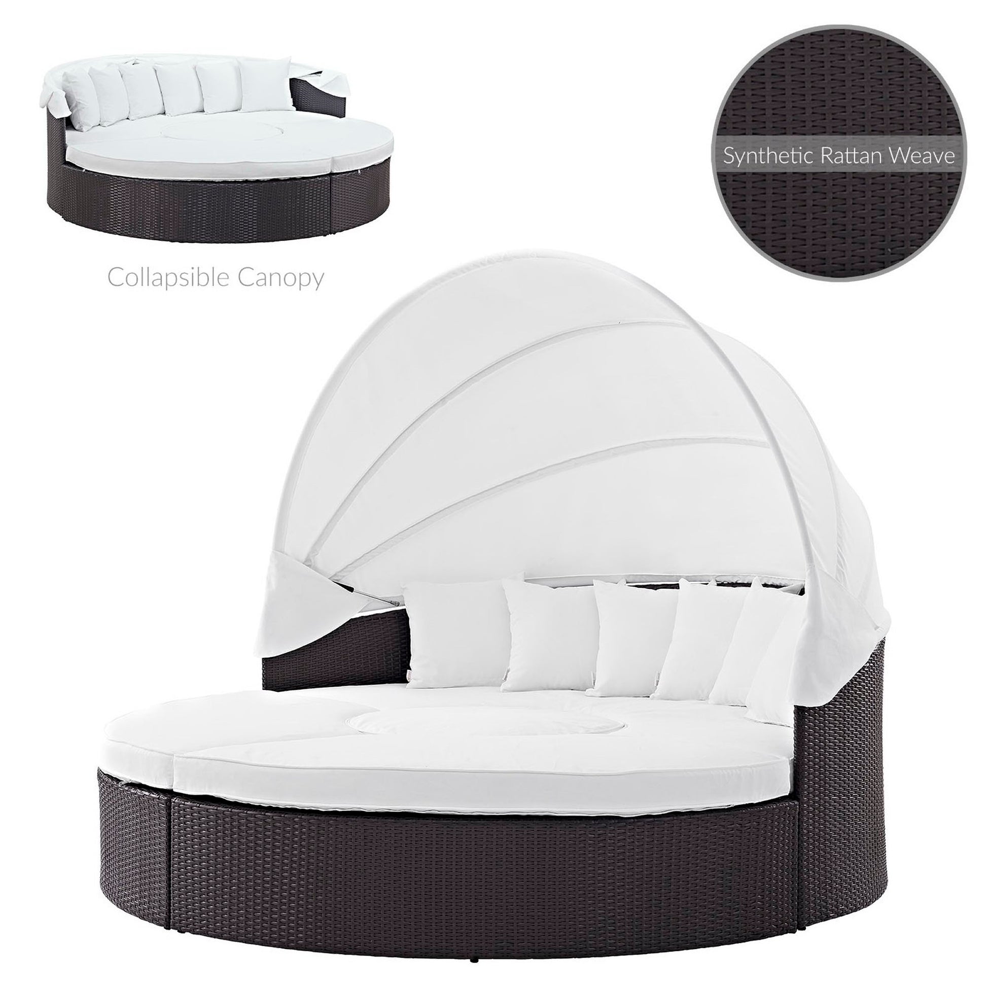 Modway Outlet Quest Outdoor Patio Wicker Rattan Canopy Sectional Daybed by Modway Outdoor Furniture Furniture Espresso White - EEI-983-EXP-WHI-SET