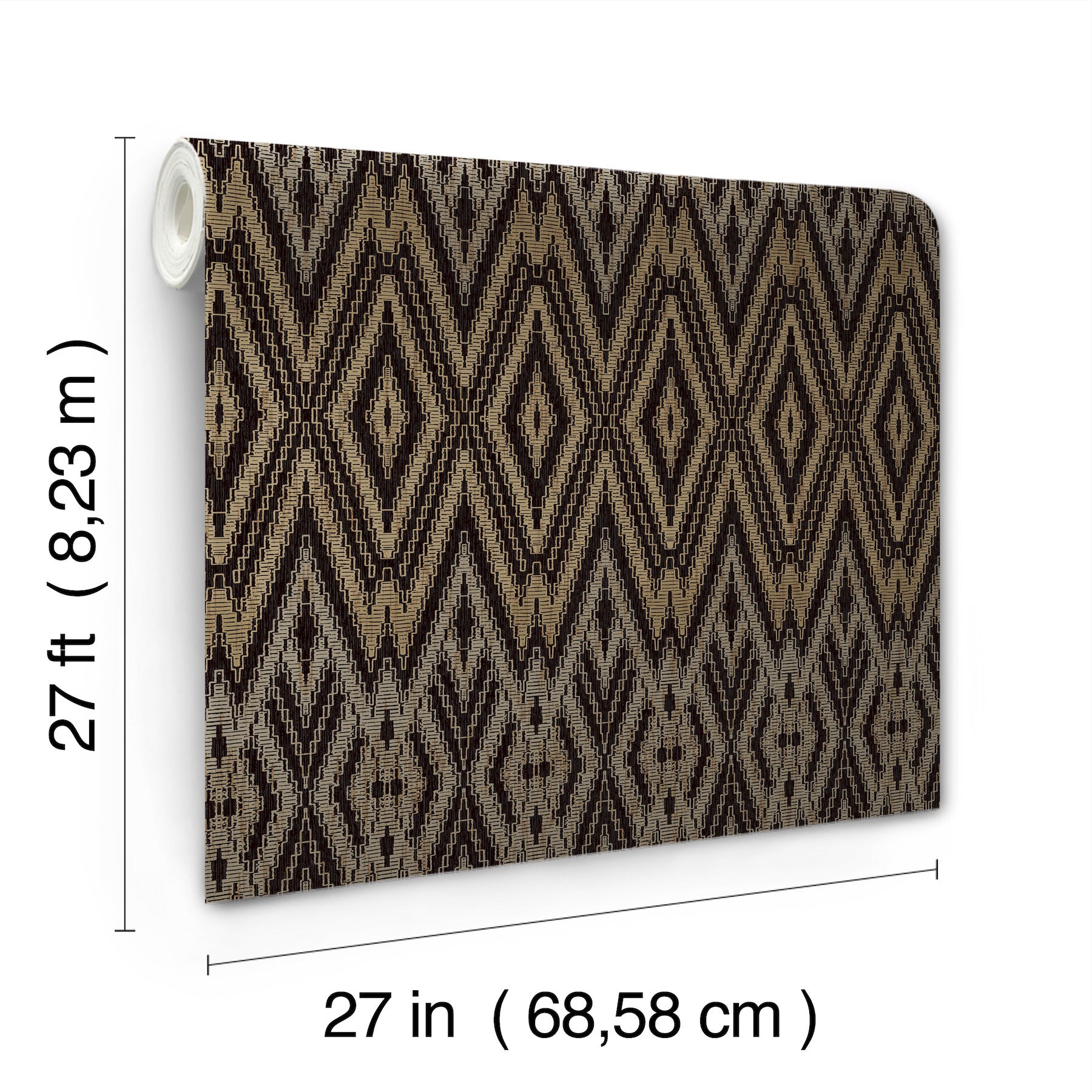 Use:Ikat pattern Diamond Marquise weaves a black and golden-brown tapestry of elegance in this updated homage to the timeless charm of native handlooms. This Diamond Marquise Wallpaper measures approximately 27 inches wide by 27 feet long, measuring approximately 60.8 square feet per roll. Organic simplicity and lustrous adornment for the modern home.